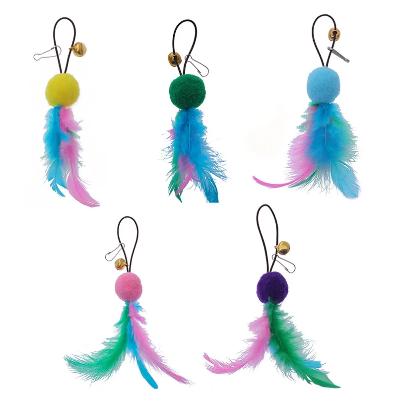 Cat Teaser Stick Replacement Head Furry Ball Feather Replacement Head Cat Pendant with Buckle Sounding Bell Feather Accessory