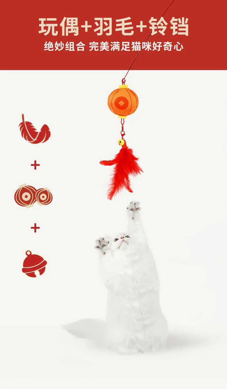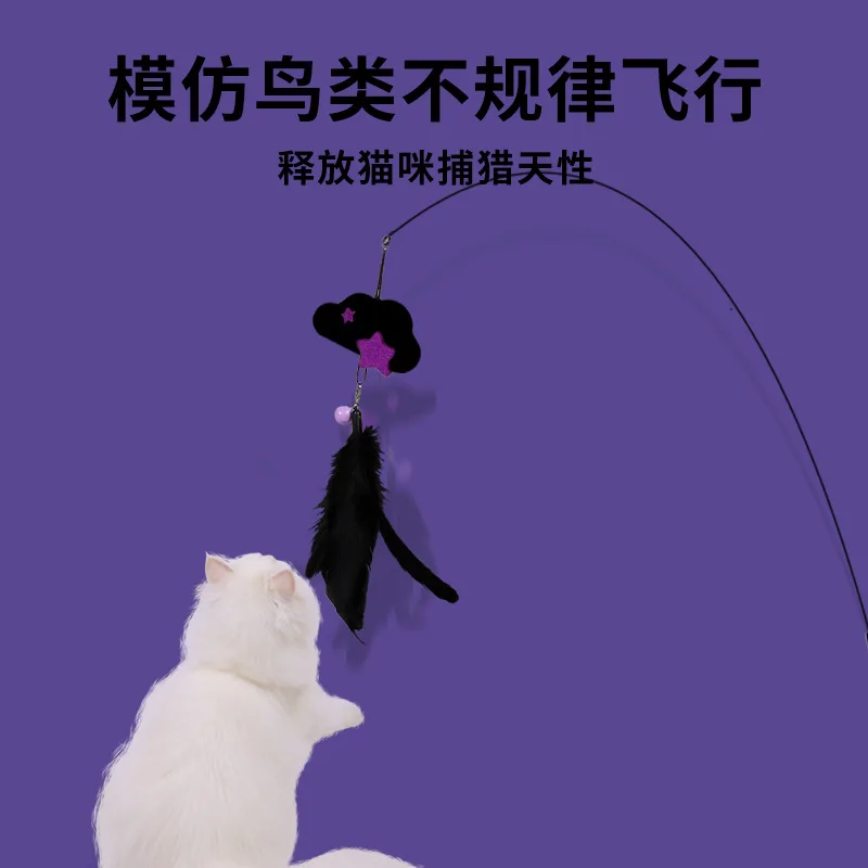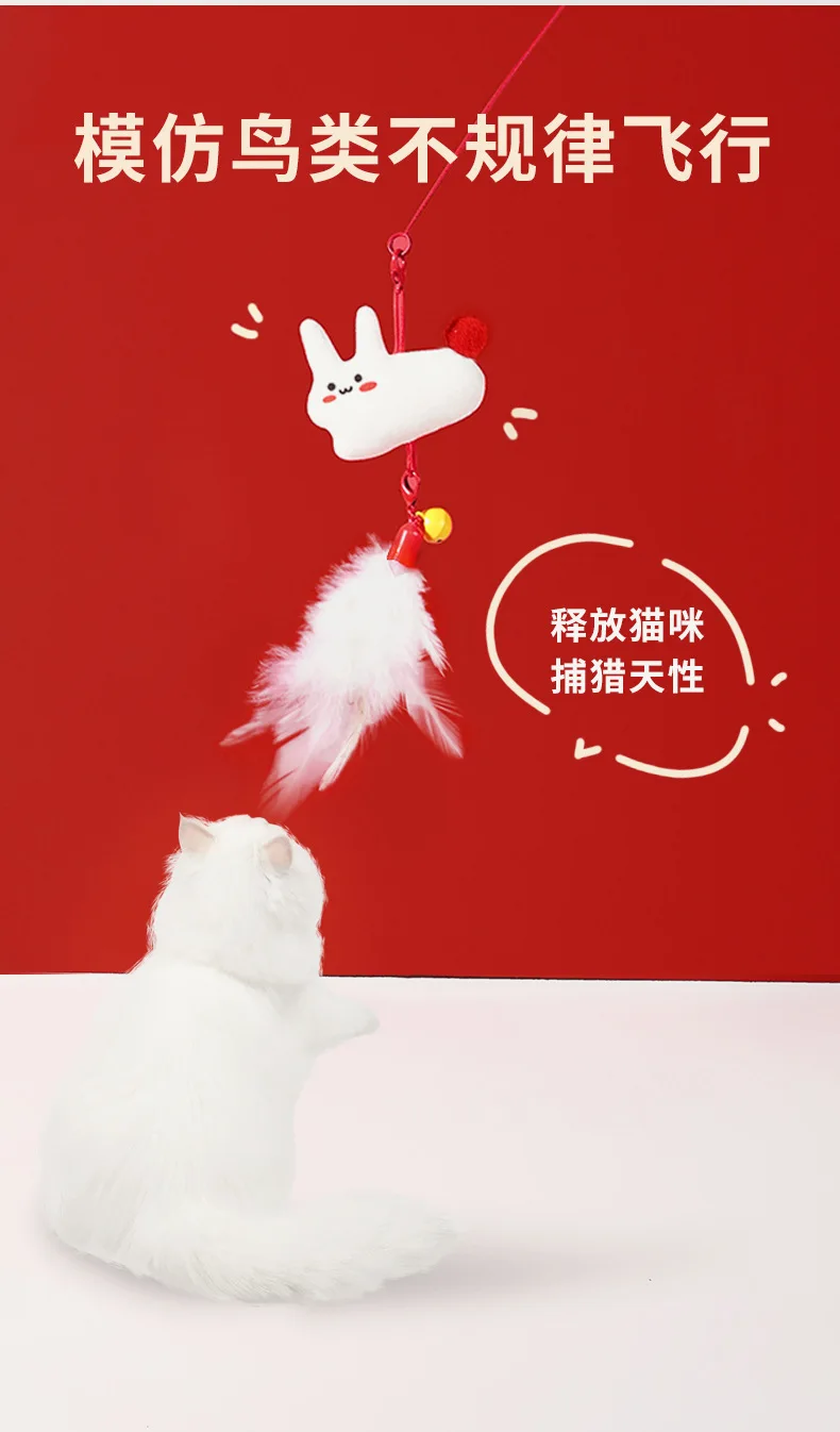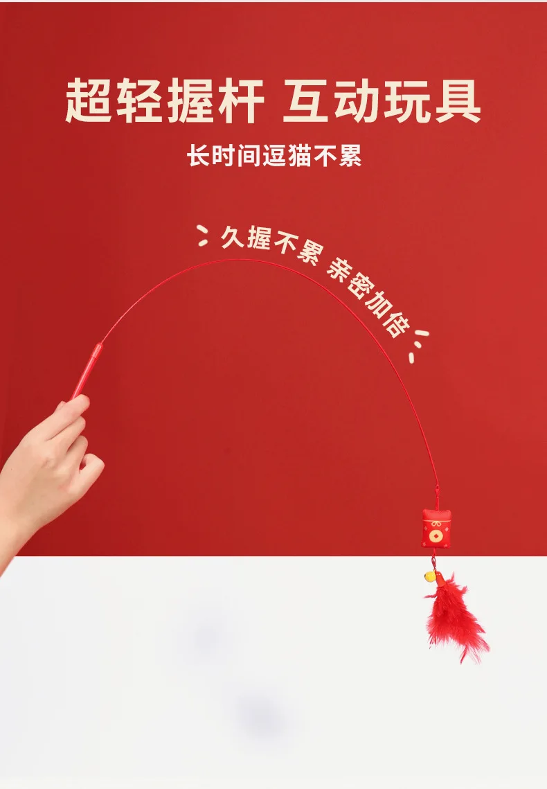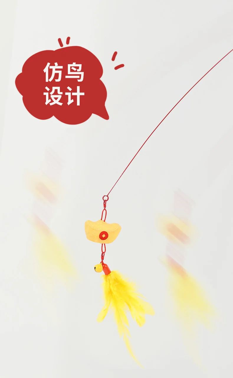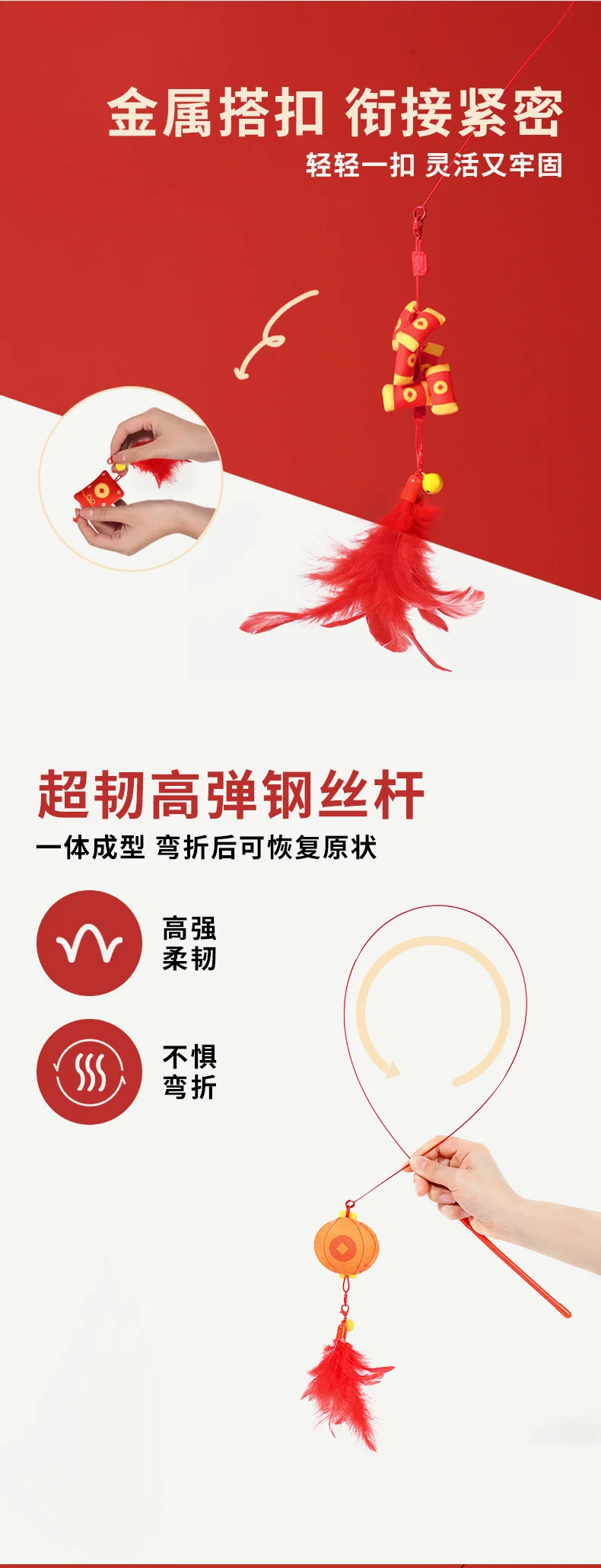 Cat Teaser Wand with A Bell Bite Resistant Feather Pet Toy Steel Wire Long Pole Kitten Supplies