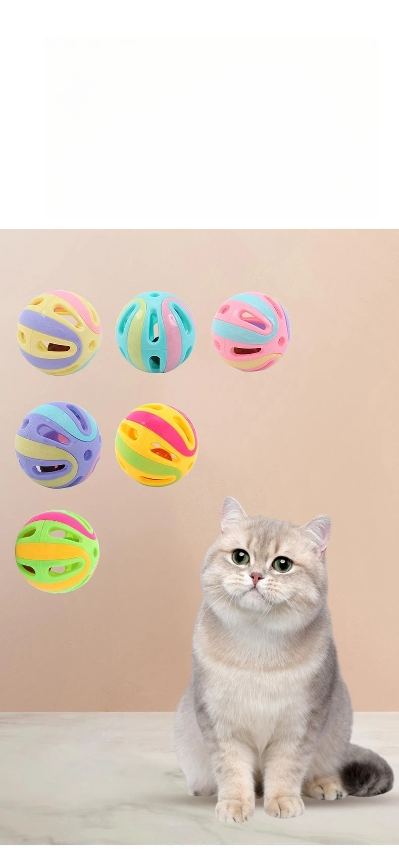 Cat toy plaid ball with bell Erle bulk pet plastic bell toy