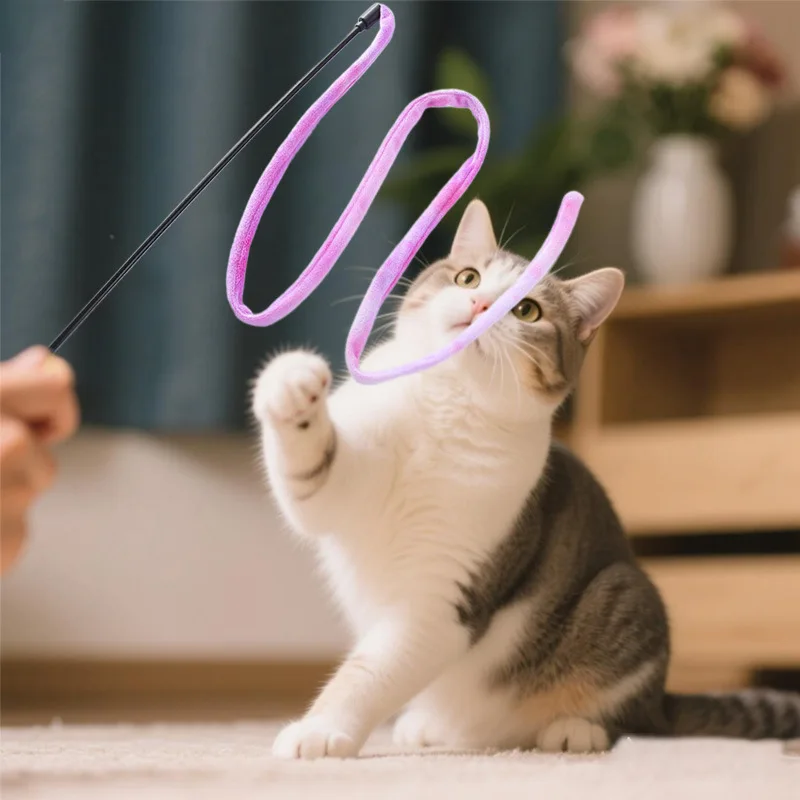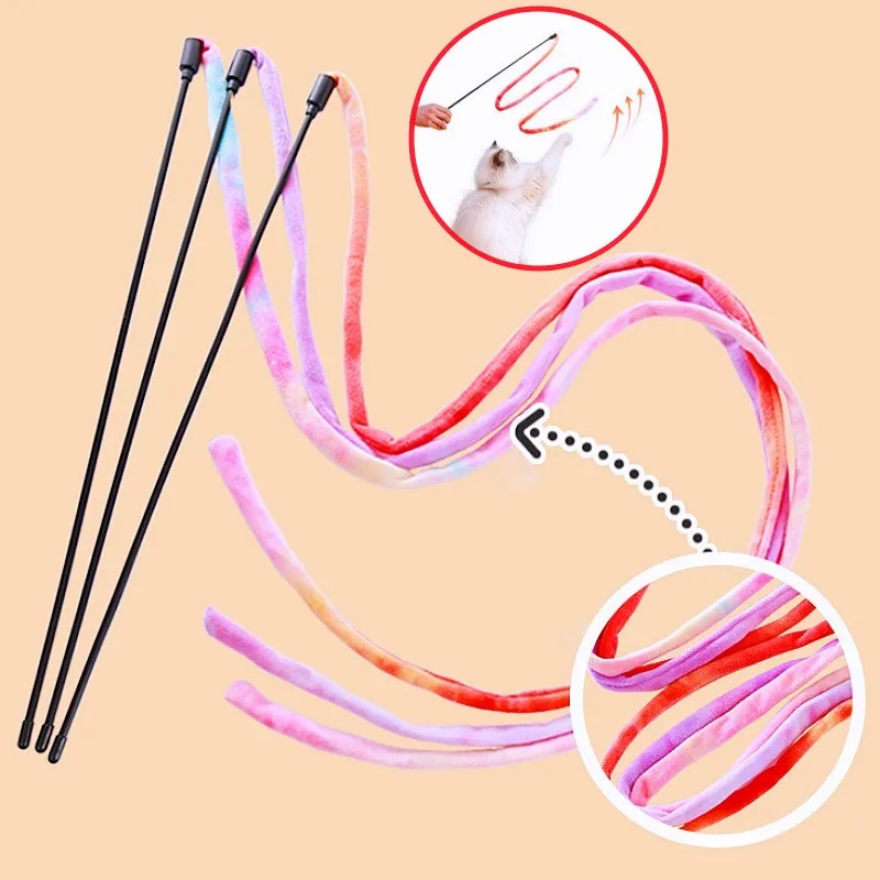 Cat Toy Plush Tassel Cats Teaser Stick Self-hi Cat Toys Interactive Long Handle Sticks Cats Toys with Bell Pet Toy Pet Supplies
