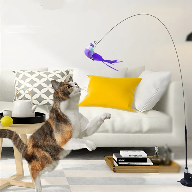 Cat Toy Self Hi Interactive Cat Toy Funny Feather Toys for Cats Tease Hands Free Steel Wire Cats Toys with Sucker Pet Supplies