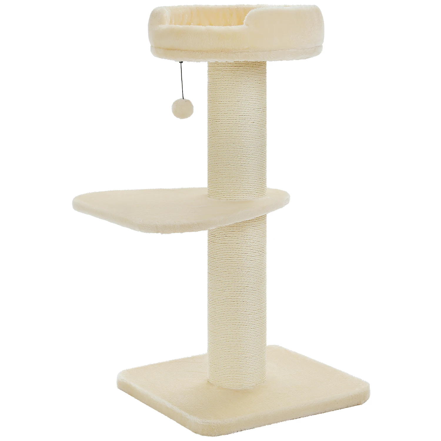 Juega y descansa para el paraíso: equipado con 2 resistentes postes rascadores de sisal y un pompón de felpa, tus amigos peludos disfrutarán del entretenimiento en este árbol para gatos de flores en un tiempo ilimitado.Y el rascador para gatos puede mantener eficientemente a los gatos traviesos alejados de sus muebles.