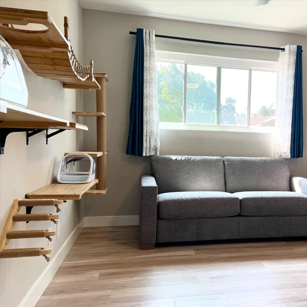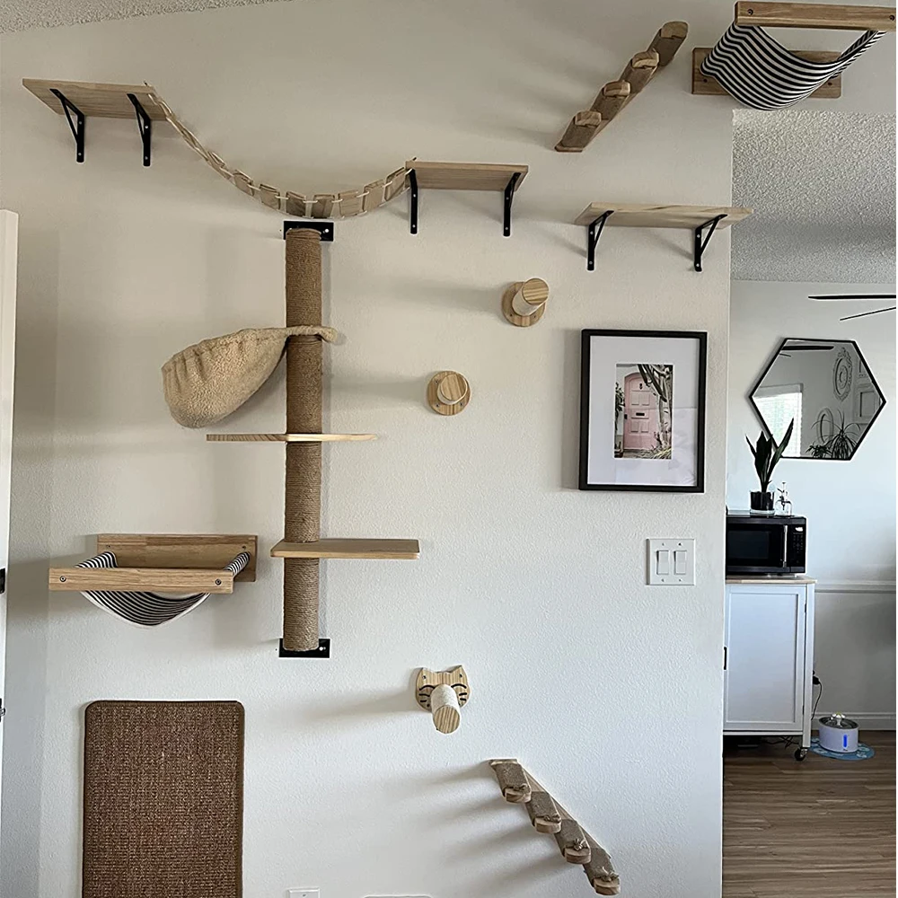 Los estantes de pared para gatos se adaptan al hábito de los gatos de escalar, aumentan el ejercicio y reduciendo la posibilidad de obesidad, lo que es bueno para la salud.Además, le da a los gatos espacio para escalar y evitar estropear la casa.