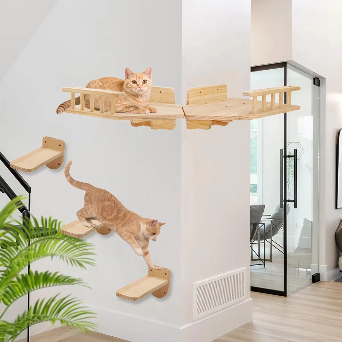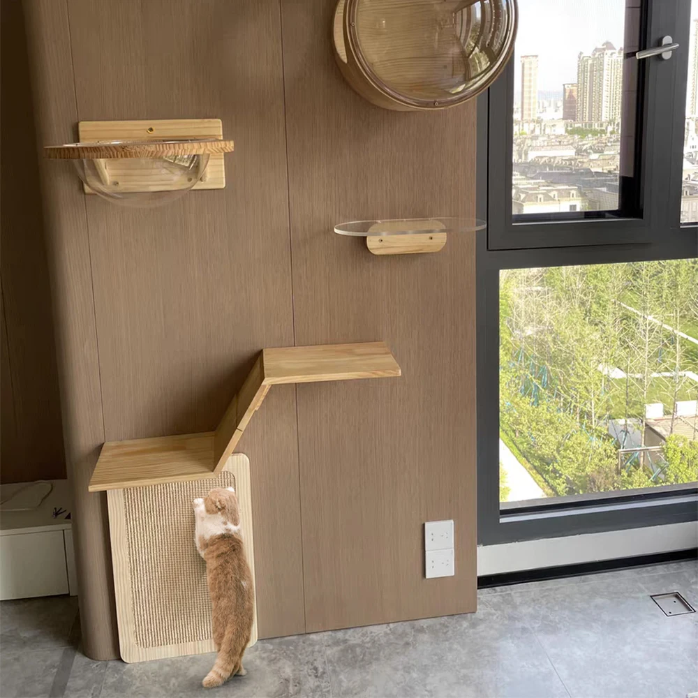 El parque para gatos montado en la pared está montado en la pared, adecuado para casas o apartamentos con espacio limitado, y es un buen ayudante para ahorrar espacio. El elegante tono de madera combina con cada interior de su hogar, y puede elegir la altura correcta de acuerdo con la capacidad de salto del gato. Es una gran opción de regalo para los dueños de gatos.