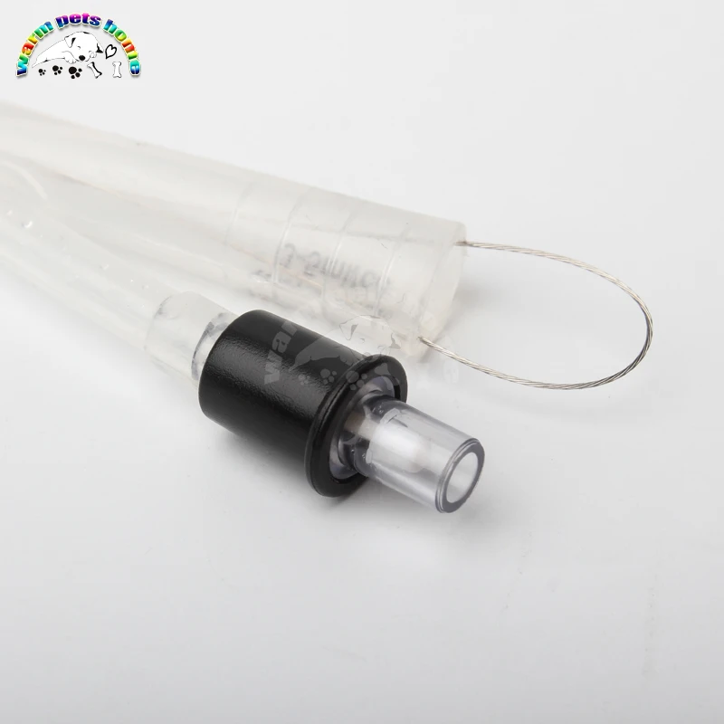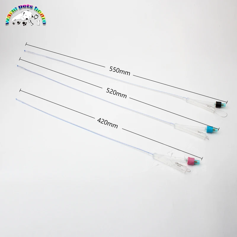 100% silicona con cable guía.Estéril no tóxico (sterilización con óxido de etileno) extremos cerrados, 2 aberturas laterales.Los animales no tienen dolor evidente.Nota: No utilice lubricantes a base de petróleo como vaselina, aceite para bebés, líquido corporal, aceite de masaje, mantequilla, etc.Hay 6 especificaciones disponibles, elija según el tamaño del título:Fr6 --- El diámetro exterior es de aproximadamente 2 mm y la longitud es de 330 mm, adecuado para perros pequeños, como Teddy, etc.Fr8 --- el diámetro exterior es de aproximadamente 2,7 mm, longitud 330 mm, adecuado para perros medianos, como Labrador, etc.Fr10 --- El diámetro exterior es de aproximadamente 3,3 mm y la longitud es de 330 mm, adecuado para perros grandes, como perros pastor, etc.Fr6 (tipo extendido) --- El diámetro exterior es de aproximadamente 2 mm y la longitud es de 420 mm, adecuado para perros pequeños, como Teddy, etc.Fr8 (tipo extendido) --- El diámetro exterior es de aproximadamente 2,7 mm y la longitud es de 520 mm, adecuado para perros medianos, como Labrador, etc.Fr10 (tipo extendido) --- El diámetro exterior es de aproximadamente 3,3 mm y la longitud es de 550 mm, adecuado para perros grandes, como perros pastor, etc.Nota: error de medición manual±5 mmCómo utilizar:(1) Lávese las manos antes de usar y lubrique el exterior del catéter con glicerina médica u otro lubricante a base de agua.(2) De acuerdo con las especificaciones de la tapa de plástico, se inyecta la solución salológica y el globo final se abulta instantáneamente y se bloquea en la boca de la vejiga para evitar resbalones.Al sacar, use una jeringa para mantener la misma posición, libere líquido o aire y retire lentamente el catéter después de que se haya contraído el globo.
