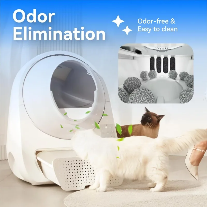 [Control triple de olores para un hogar fresco] Mantenga su hogar con un olor limpio y fresco.La cámara de globo suave y resistente al polvo es fácil de limpiar, lo que facilita el mantenimiento para ahorrar tiempo.Esta caja recolectora de arena tiene un compartimento de filtro que controla los olores, sin dejar lugar para que los olores se escondan.Incluso si está fuera una semana, no necesita preocuparse por la cantidad de grumos de arena para gatos y olores, proporcionando un ambiente de aire fresco para su hogar.