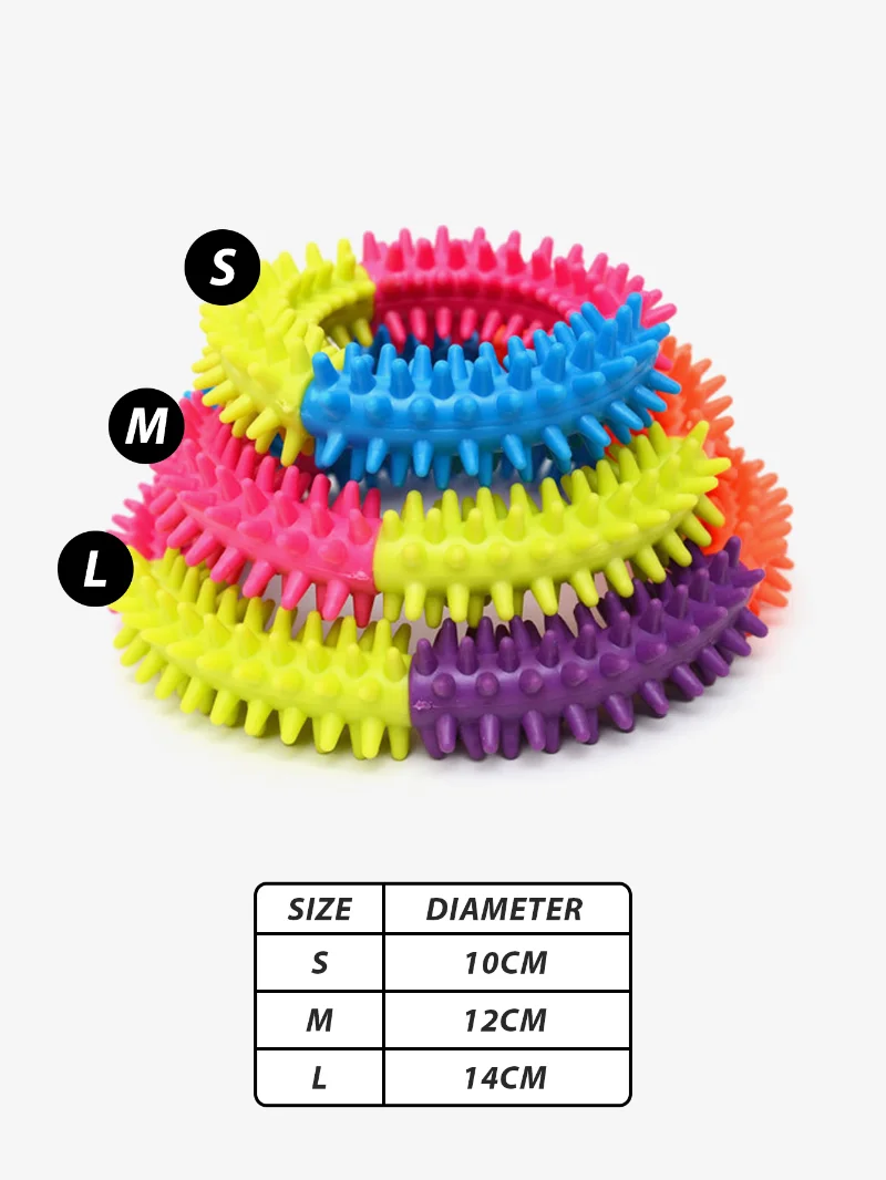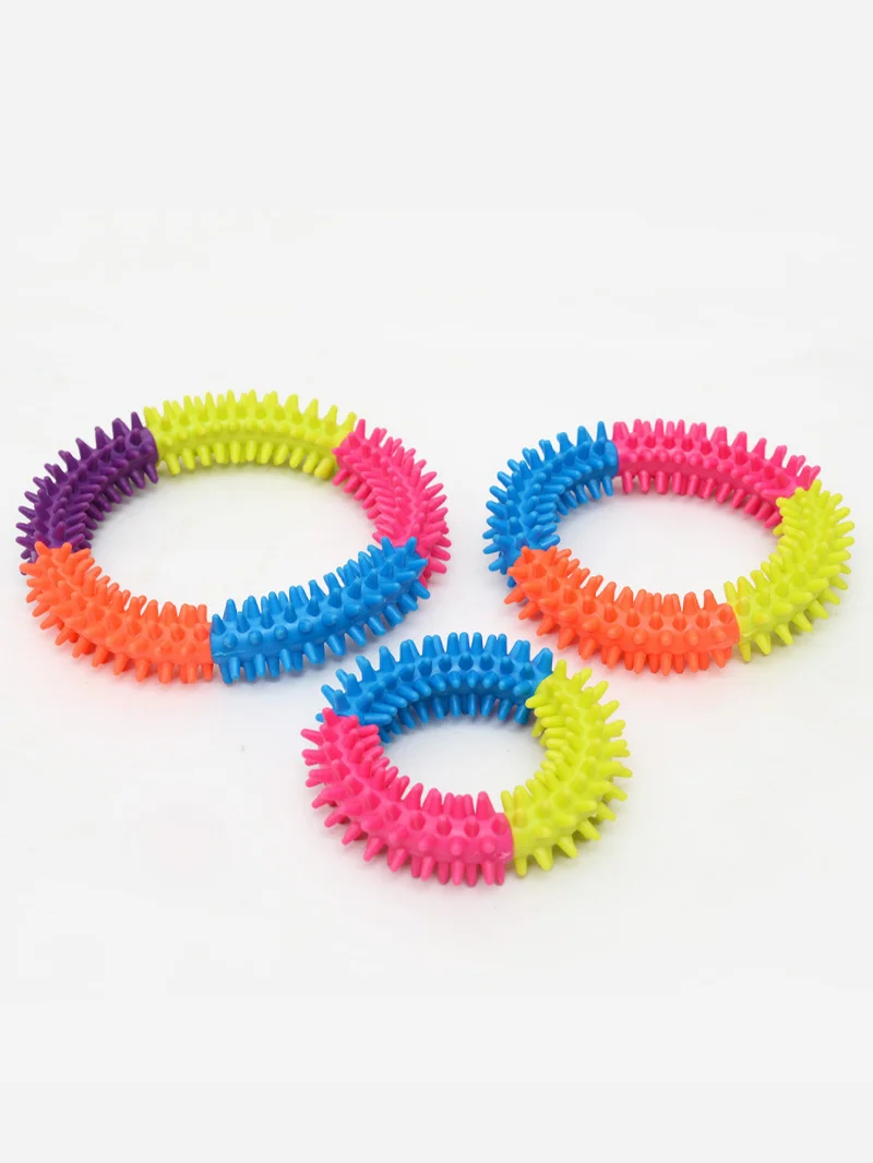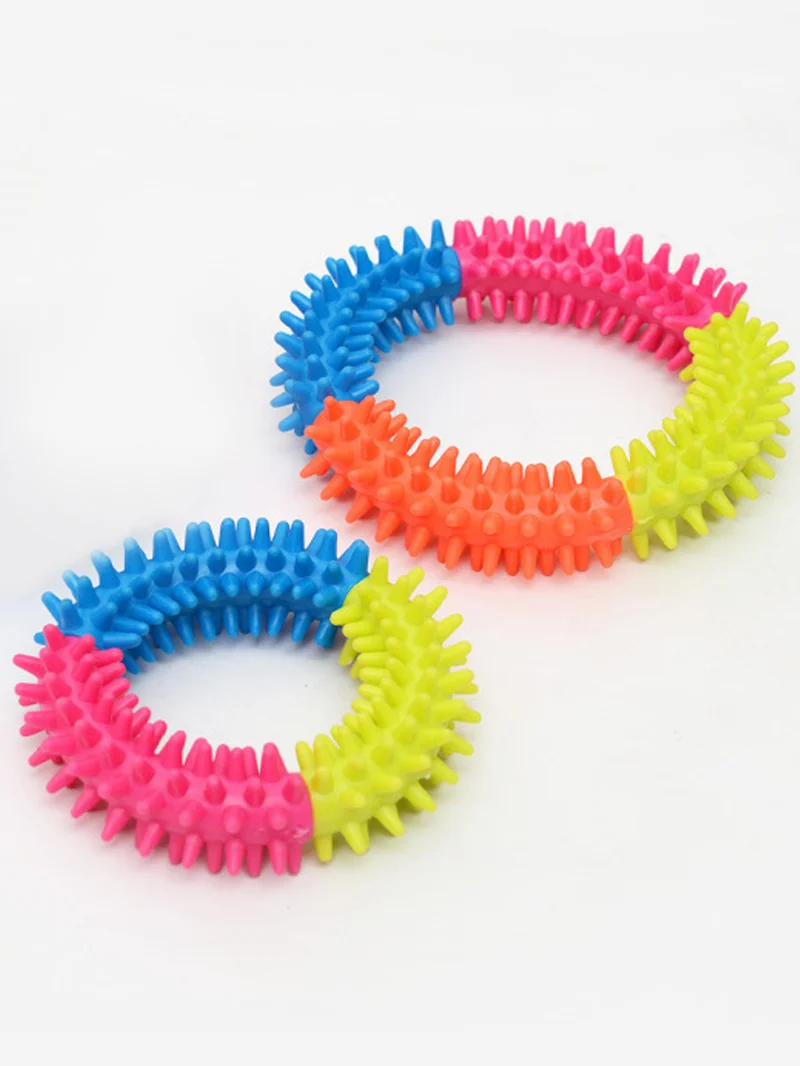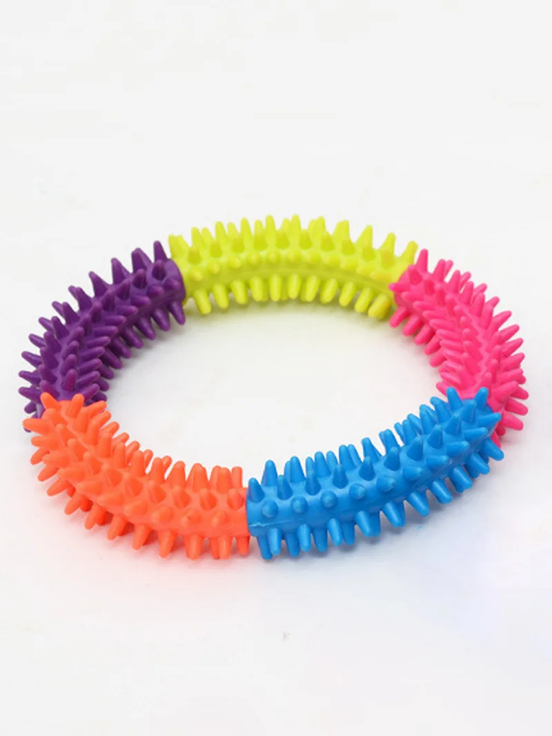 CAWAYI KENNEL TPR anillo de espina de goma juguete Color arcoíris juguetes para masticar para perros pequeños y grandes cachorro de compañía molienda de dientes suministros de juguete D9230