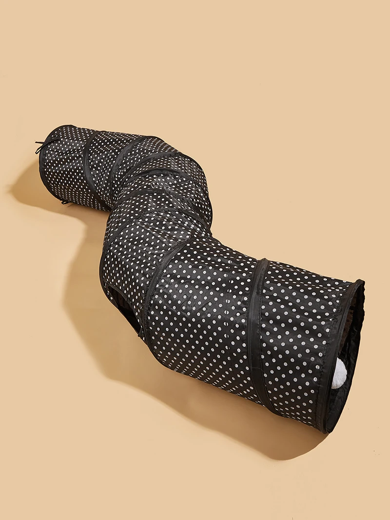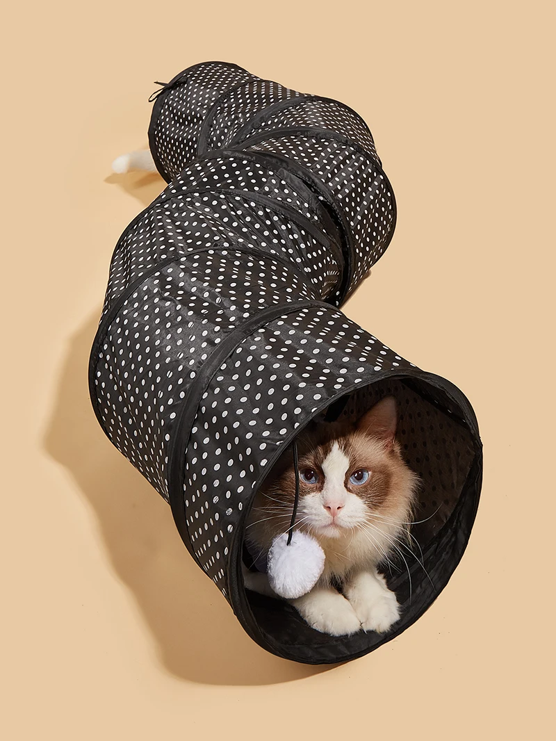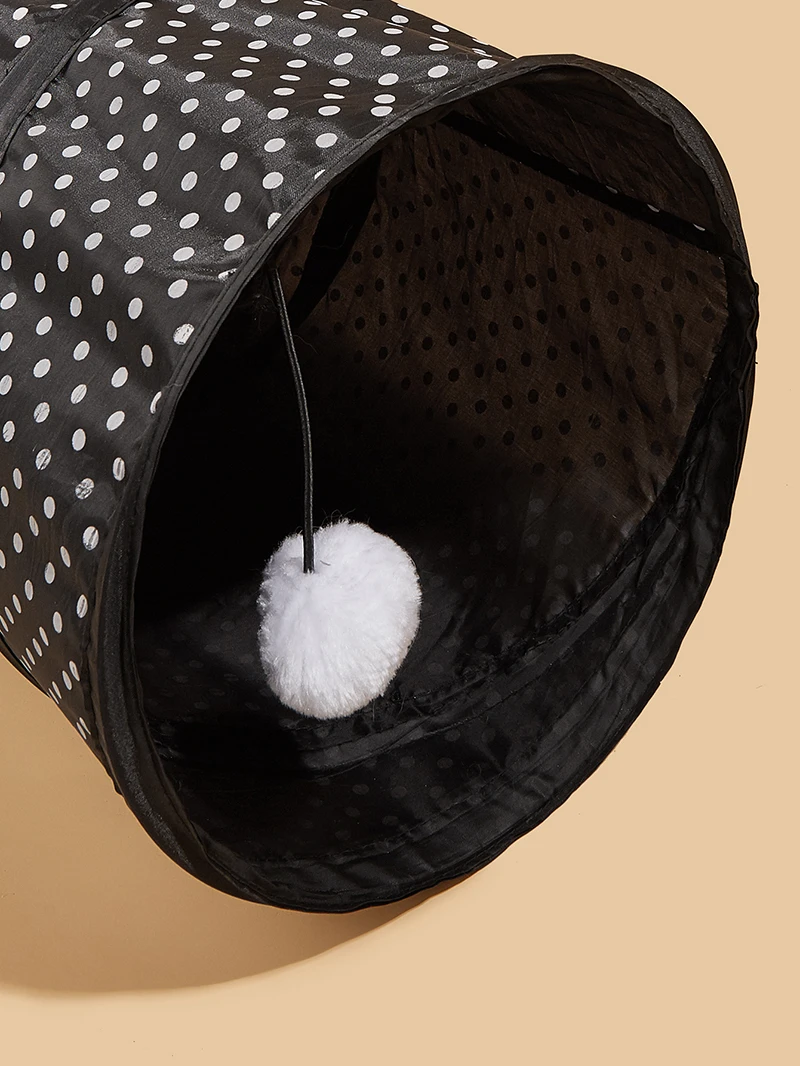 No es muy grande, no corresponde bien con el anuncio, se despliega solo y se mantiene firmemente en su lugar. Ahora solo es cuestión de que los gatos se acostumbren a este nuevo juguete.
