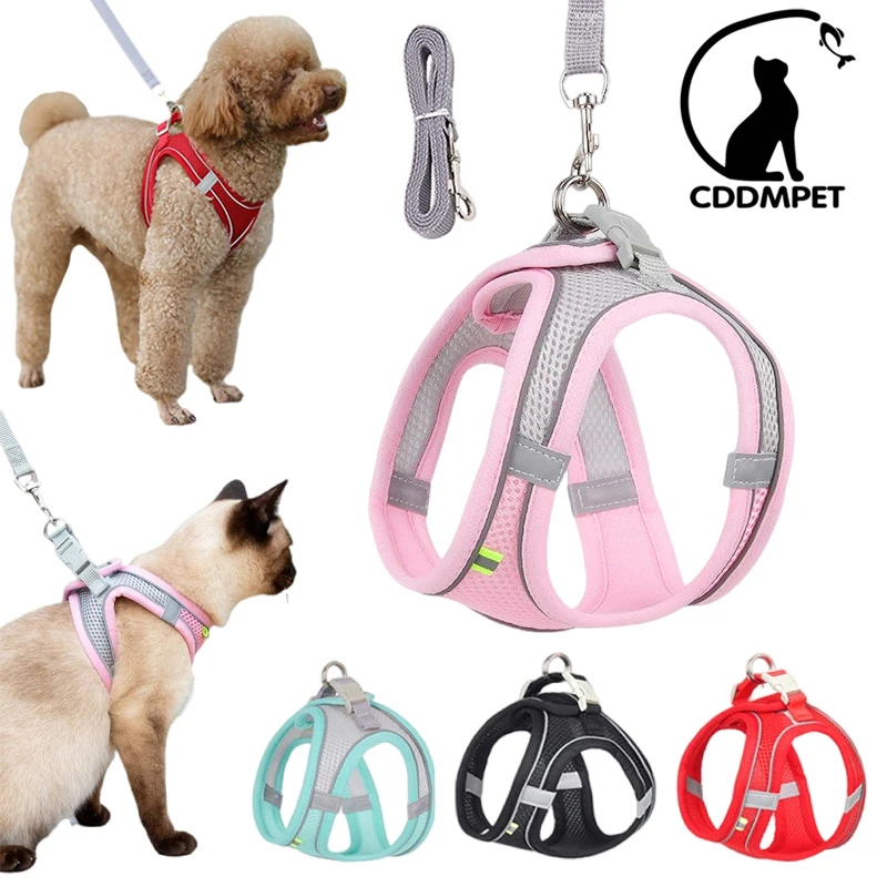 CDDMPET Chaleco de arnés para cachorros Conjunto de arnés y correa de malla transpirable para perros pequeños Gatos Correa de plomo para caminar Pug Chihuahua Suministros para mascotas