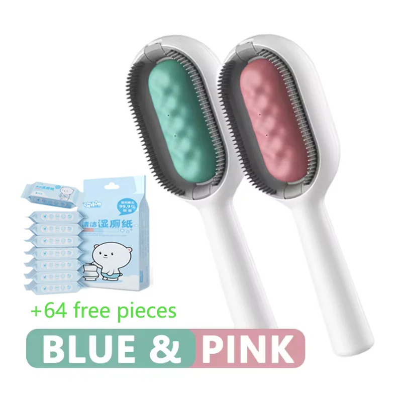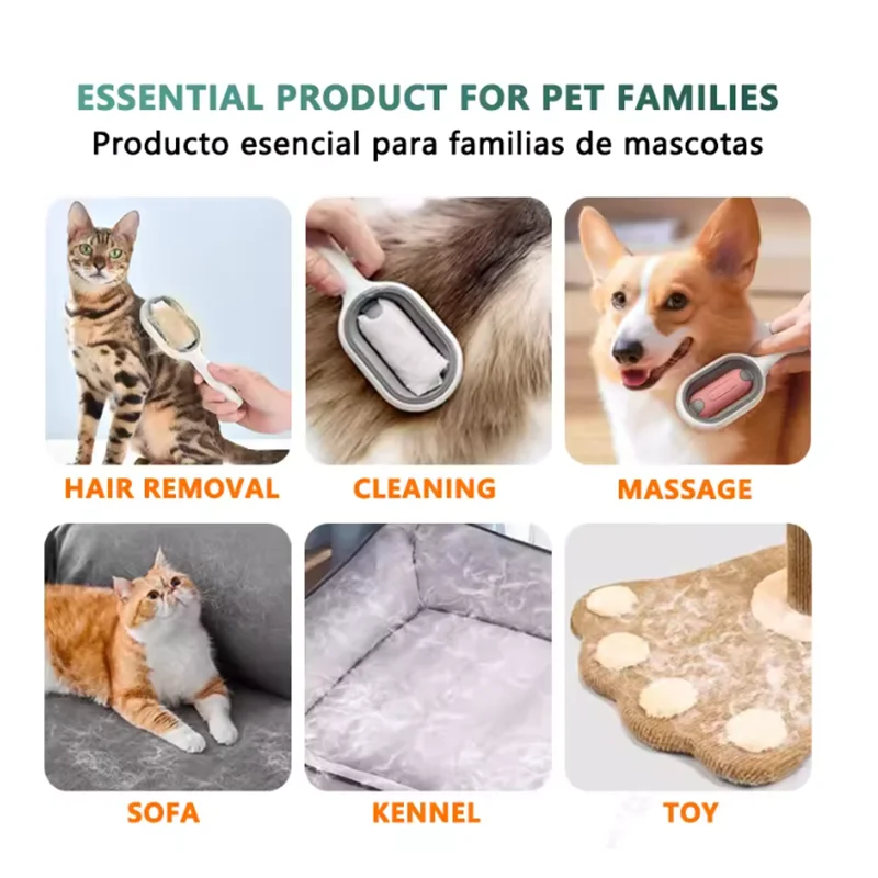 Cepillo 3 en 1 para gatos, cepillo removedor de pelo largo para perros y gatos, peine de silicona para el cuidado de mascotas con toallita y tanque de agua, accesorios para productos para mascotas