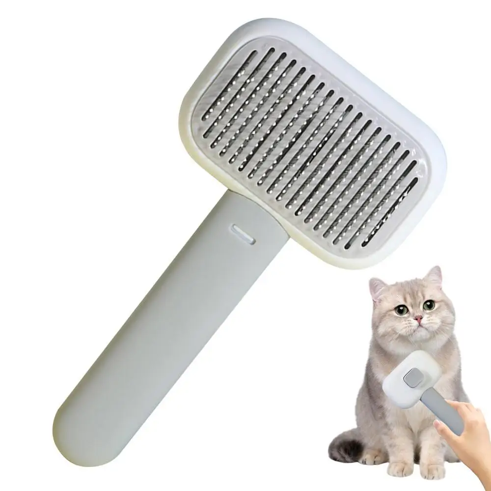 1.[Fácil de limpiar]: equipado con dientes de acero inoxidable curvos de 135 grados, el cepillo peine para mascotas puede limpiar fácilmente el pelo de su mascota, un accesorio conveniente y simple para mascotas.