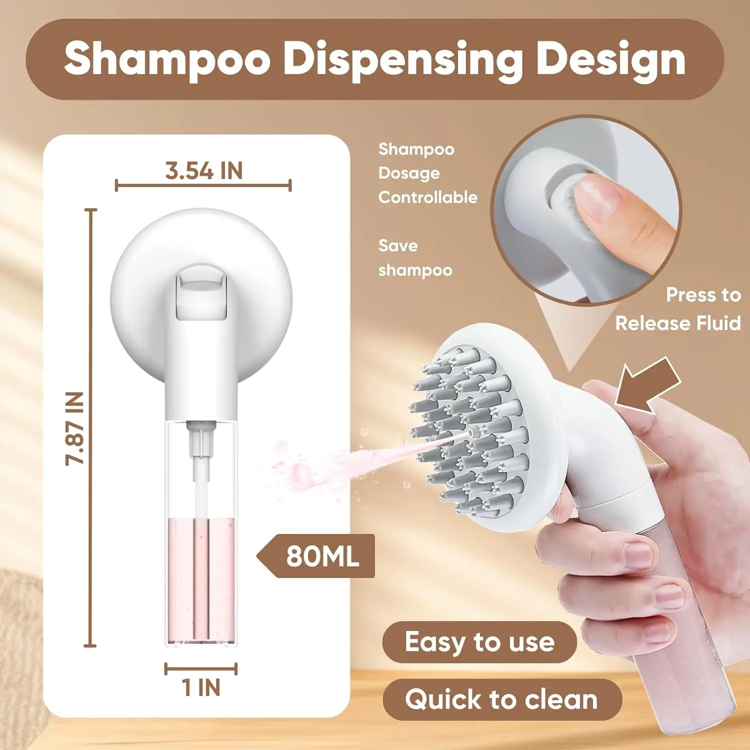 La botella tiene una gran capacidad de 80 ml, lo que resuelve fácilmente el problema de presionar el gel de ducha varias veces al bañar a su mascota. Cada prensa tiene una cantidad fija, que puede ahorrar eficazmente el gel de ducha. Haga que el proceso de baño sea más conveniente y rápido.