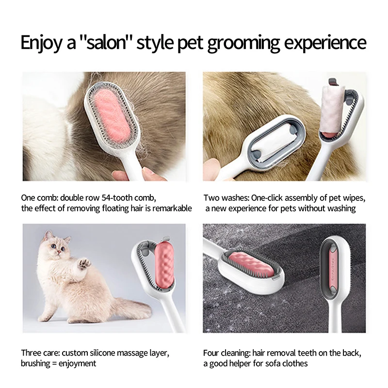 Cepillo de cuidado para gatos, peine de limpieza, peine de depilación flotante con toallitas desechables, accesorios de cuidado para mascotas, cepillo para perros y gatos