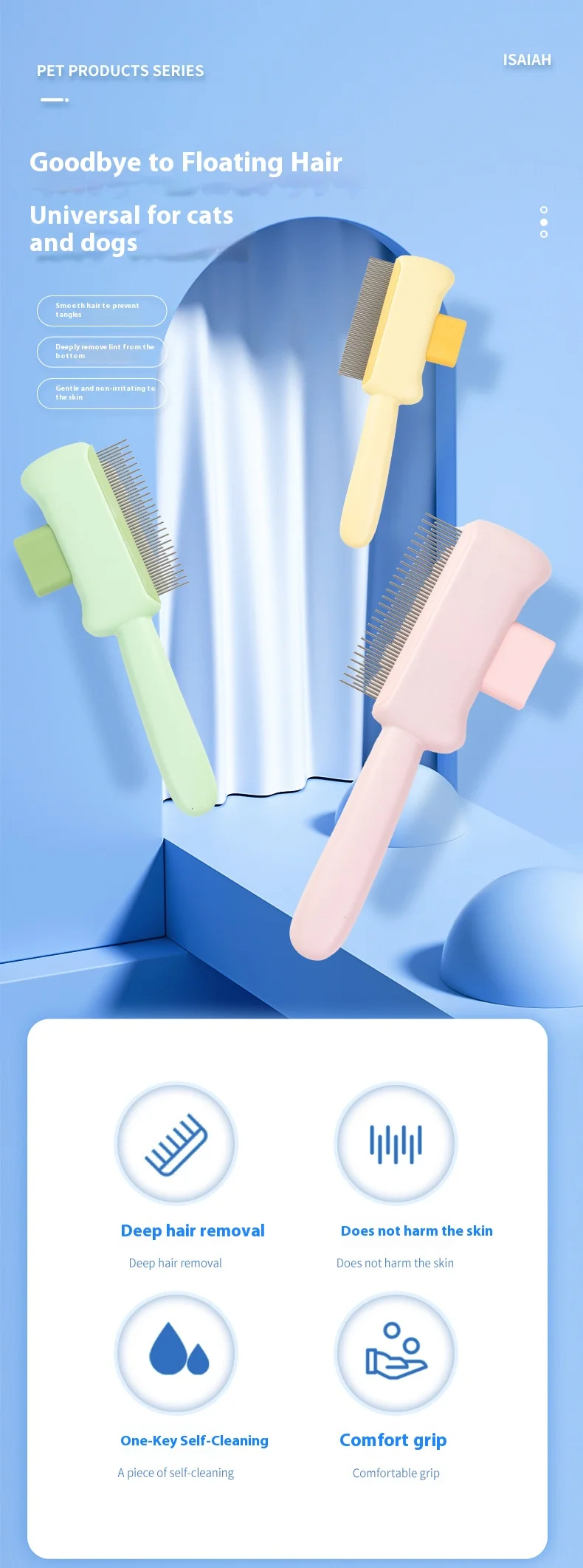 Cepillo de cuidado para mascotas autolimpiante: peine desenredante para controlar el desprendimiento y eliminar las pulgas, para gatos y perros
