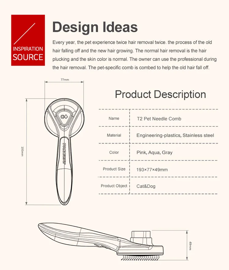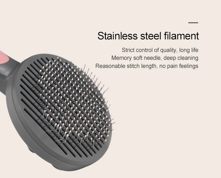 * 1. Cerdas de acero inoxidable: las agujas ligeramente inclinadas en un espacio razonable logran un aseo indoloro, con una bola de colchón de aire adicional para aliviar la presión de peinado, evitar arañazos y daños.