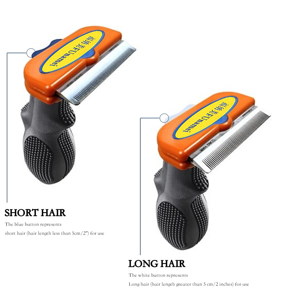 -ELEGIR LARGO Y CORTO: el pelo largo se selecciona para mascotas con pelo más largo de 2 pulgadas (5 cm), Y el pelo corto se selecciona para mascotas con longitud de pelo inferior a 2 pulgadas (5 cm).