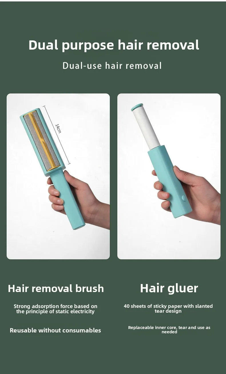 Cepillo de depilación dos en uno con succión de pelos pegajosos para mascotas, ropa, sofá, pelos flotantes, cepillo para depilación, suministros de limpieza