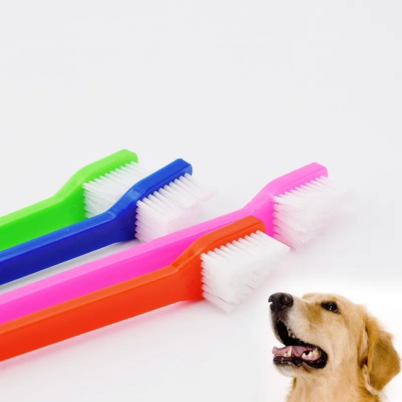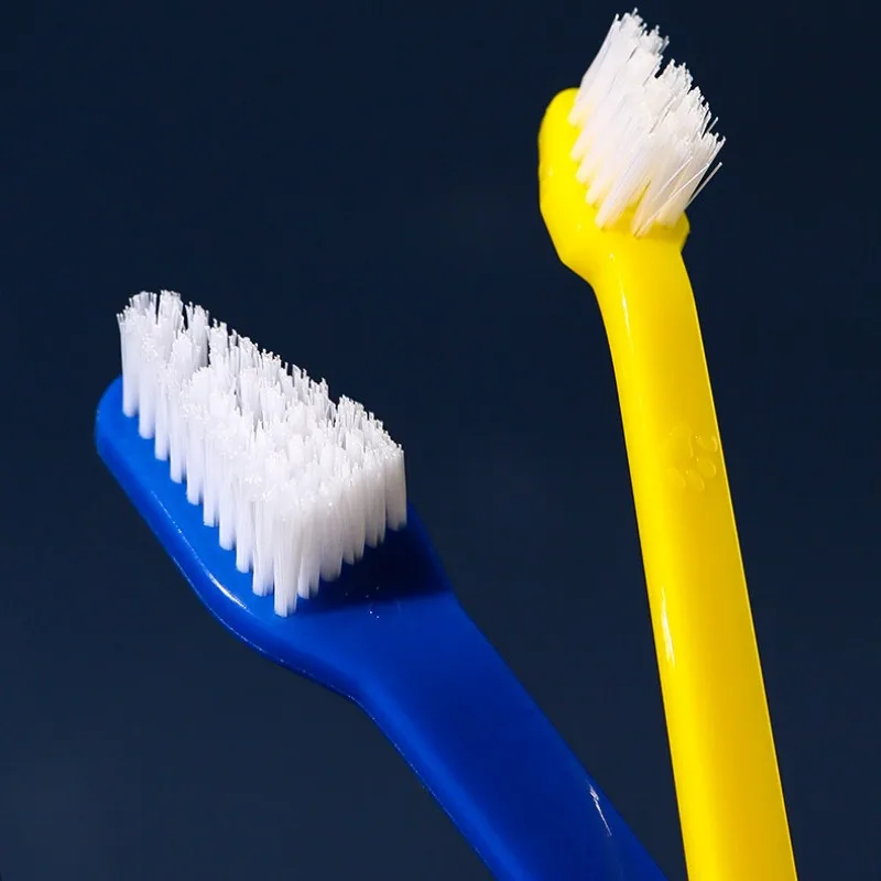 Cepillo de dientes de doble cabeza para gatos, limpieza bucal, pelo suave, mango largo, accesorios para mascotas