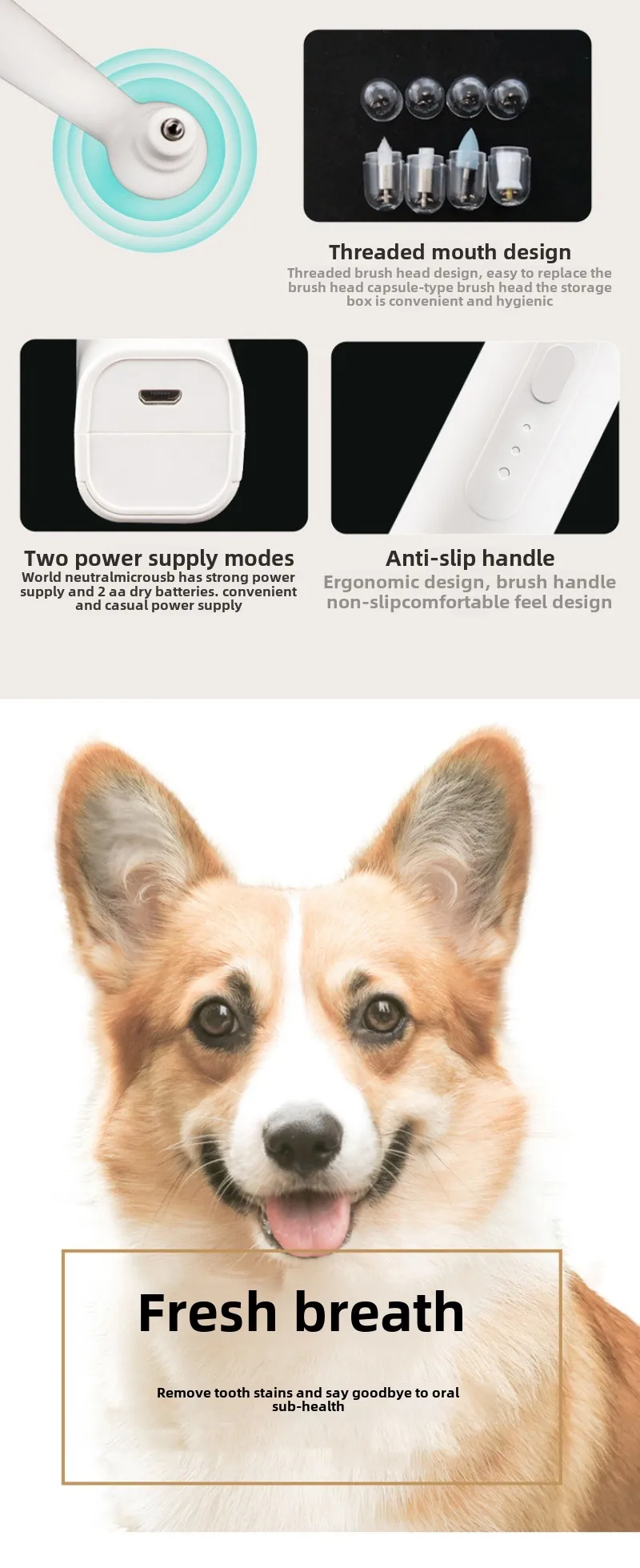 Cepillo de dientes eléctrico para mascotas, pulidor de dientes limpio, Kit de limpieza bucal, perros y gatos, elimina las manchas y el sarro, productos para mascotas, cepillos de dientes
