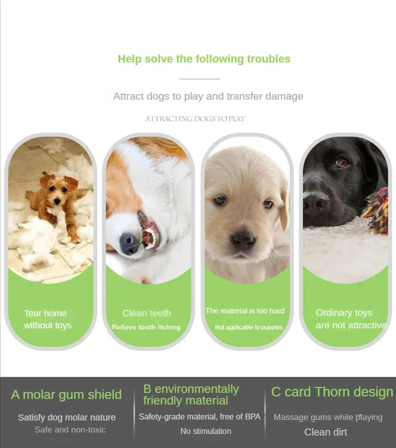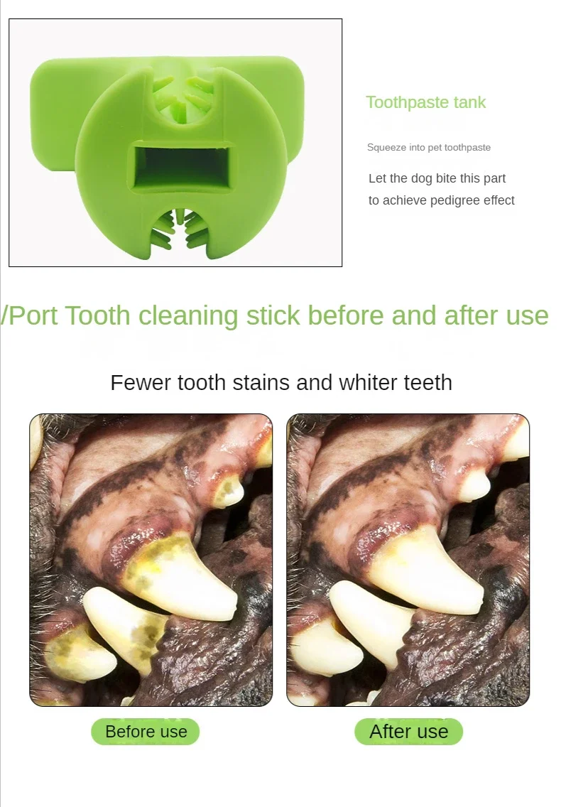 3. Ranuras de hilo de cepillo bilaterales: Limpie los dientes del perro hasta la línea de las encías.