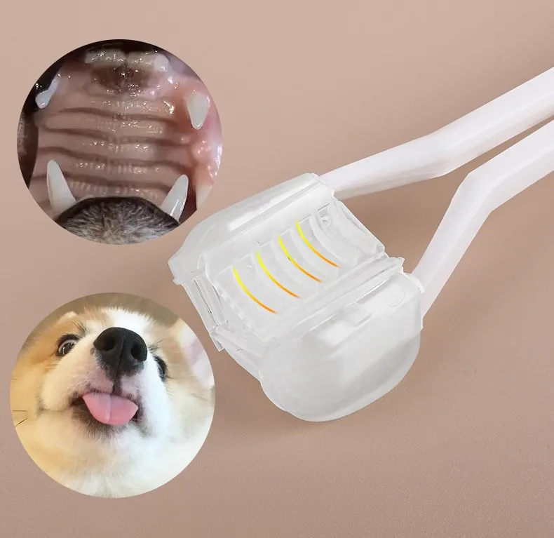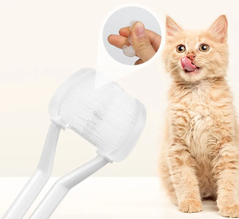 Cepillo de dientes para mascotas, cepillo de dientes para el cuidado bucal, tres caras, suministros para mascotas