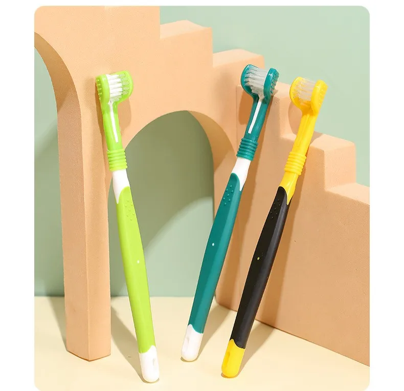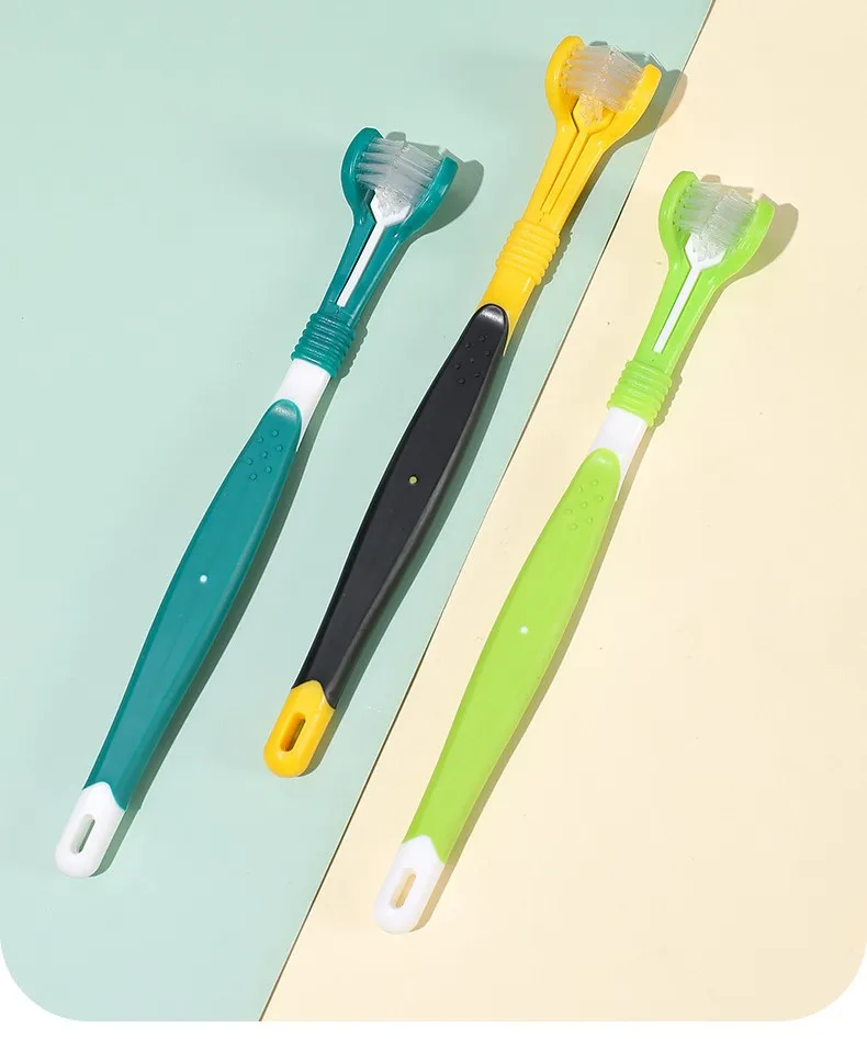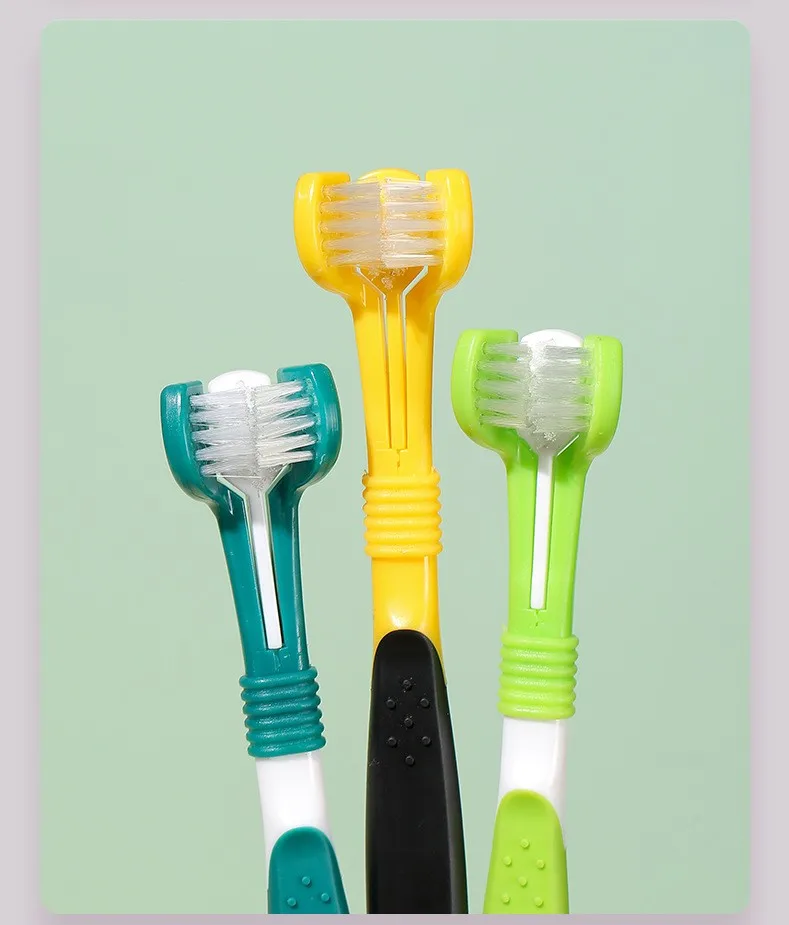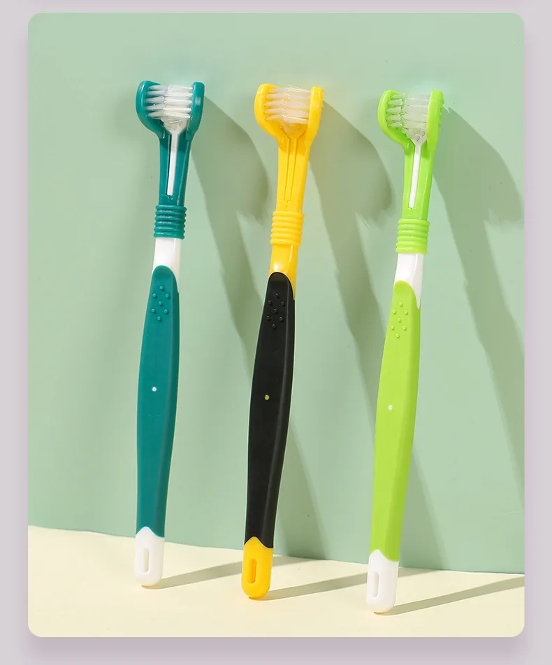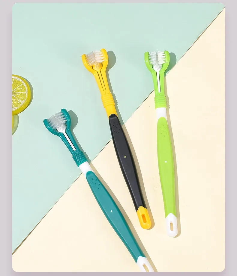 Cepillo de dientes para perros, cepillo de dientes de tres cabezas para mascotas, cuidado bucal, cepillo de pelo suave para limpieza de dientes de perros, cepillos de dientes para perros, suministros para mascotas