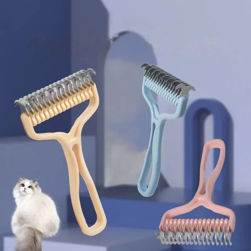 Cepillo de doble cara para gatos, cortador de nudos de piel, peine de depilación para mascotas, herramientas de aseo para perros, cepillo inoxidable, productos para mascotas