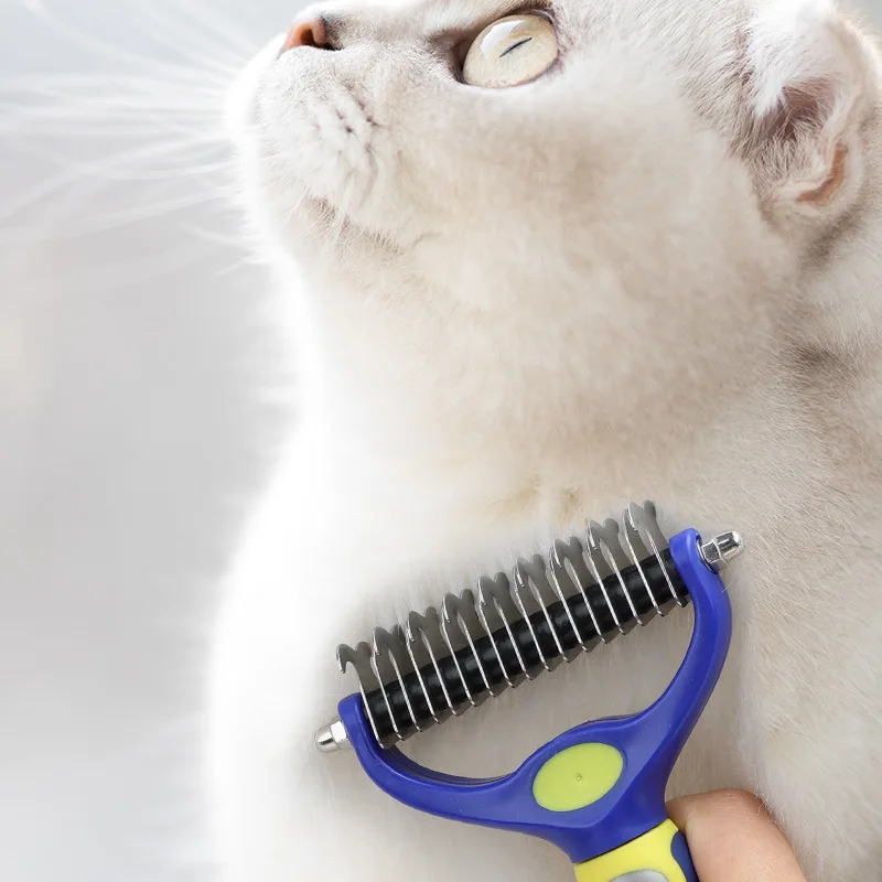 Cepillo de doble cara para perros, peine con cuchillo para limpieza de nudos de pelo, removedor de pelo, accesorios de aseo para mascotas