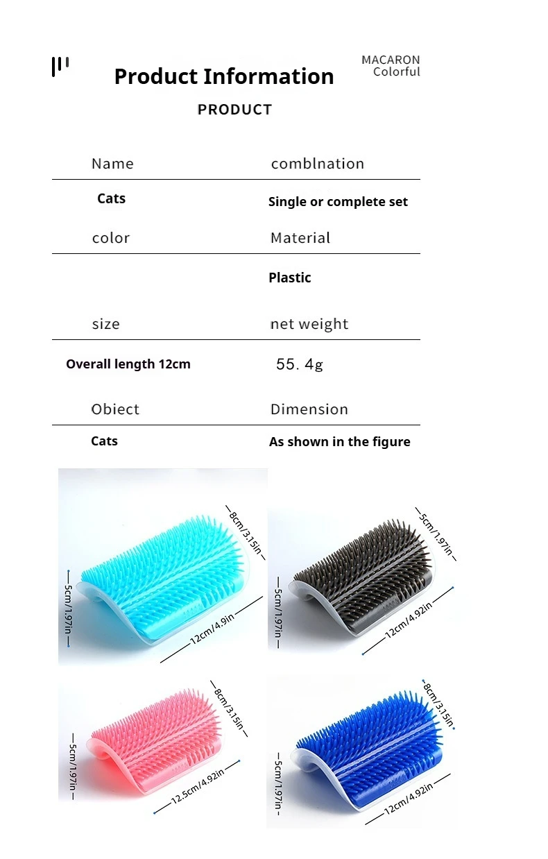 Cepillo de esquina de pared de cuatro colores con polvo de menta para gatos gratis, masajeador para gatos respetuoso con la piel, peine para gatos, nuevo