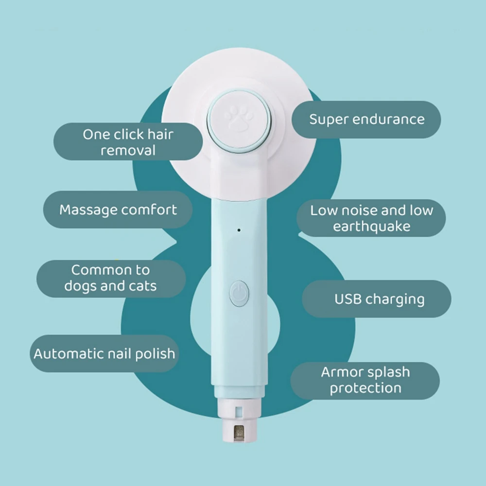 5. Carga USB, masaje de vibración + peine de masaje de vibración de pulido de uñas, más cómodo para mascotas