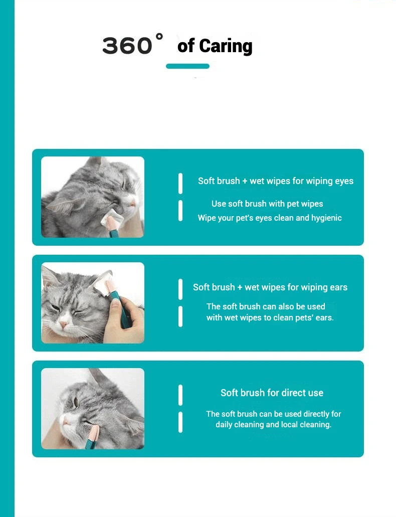 🌟 1. Cepillo suave para limpieza de ojos de mascotas: Limpia suavemente el área de los ojos de tu mascota con un cabezal de silicona suave, asegurando un enjuague fácil y rápido.