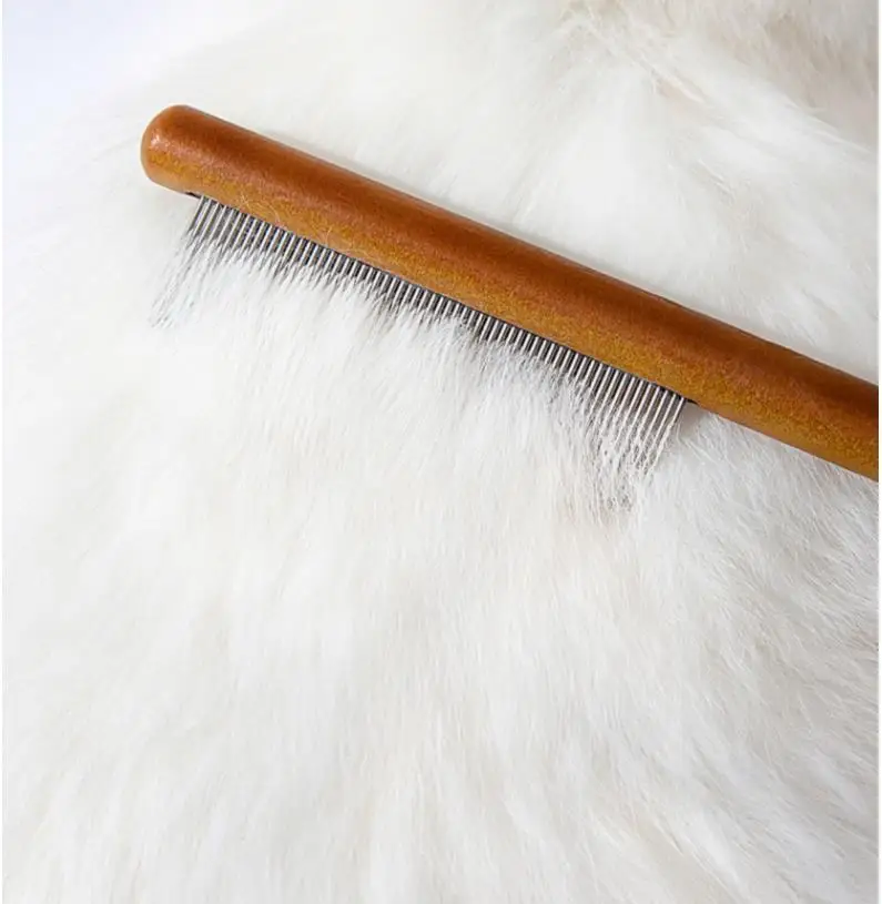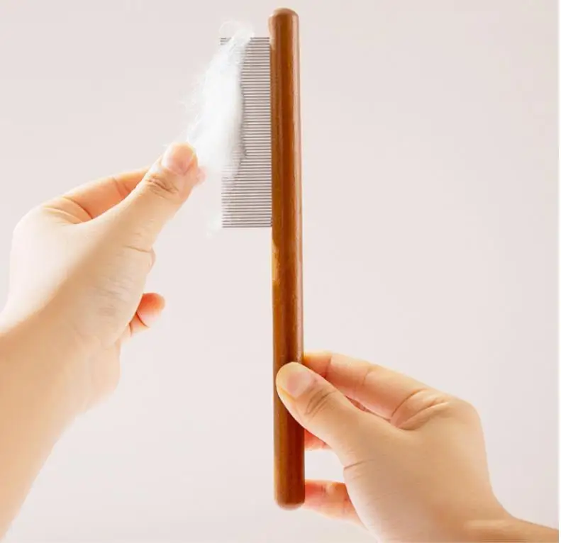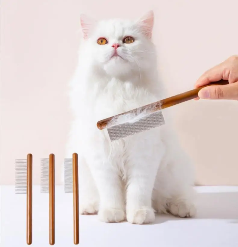 Cepillo de masaje con mango de madera para gatos, peine de removedor acero inoxidable para el pelo de mascotas, Herramientas de limpieza para perros, suministros para mascotas