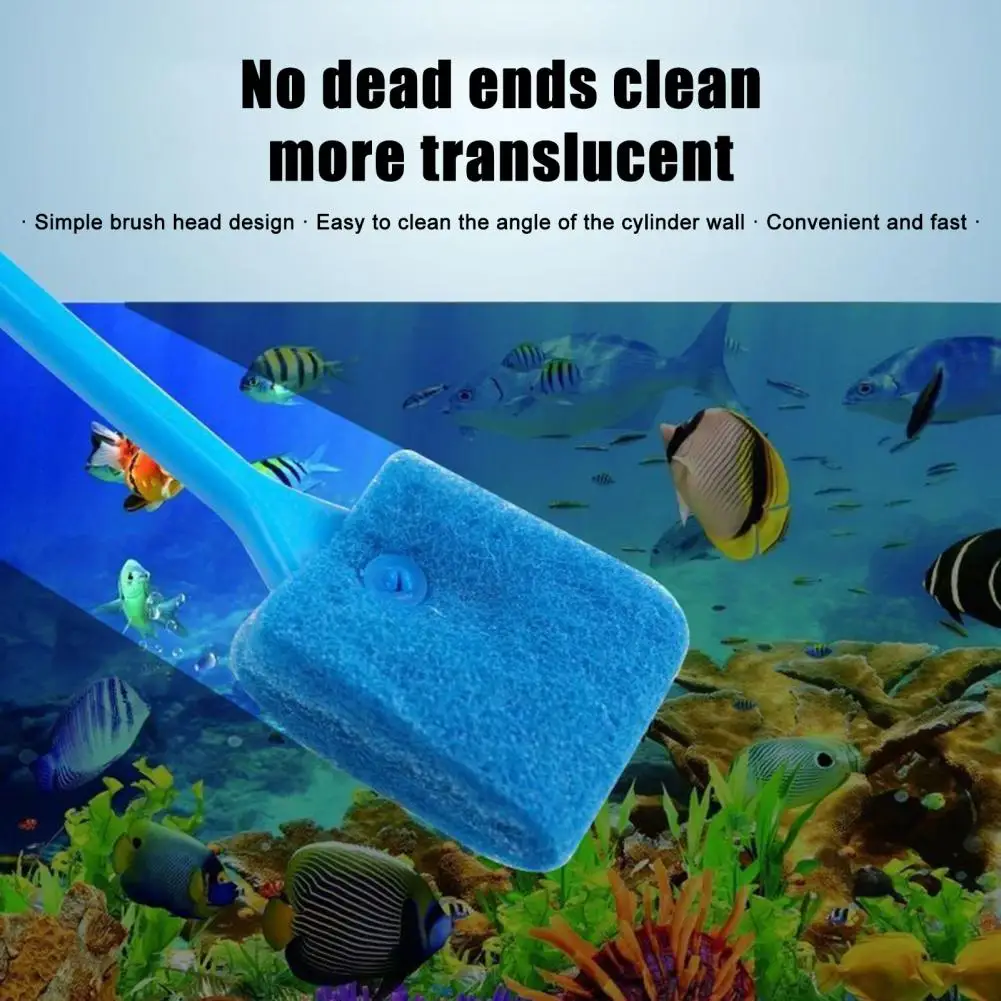Cepillo para pecera, raspador de algas para acuario con mango largo, cepillo de esponja de doble cara para acuarios de vidrio, peceras, cocina casera