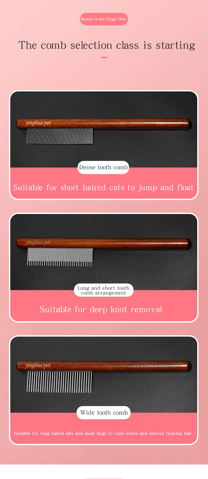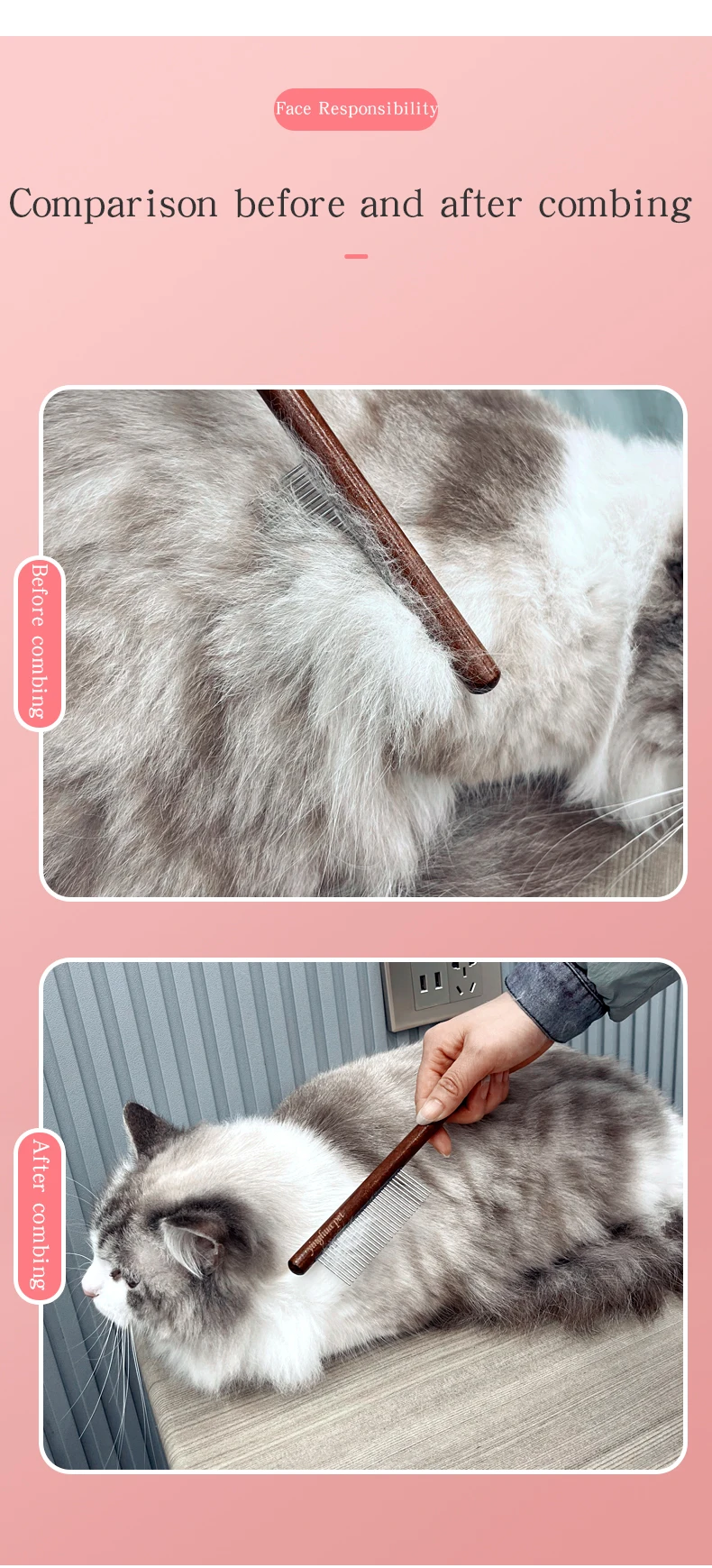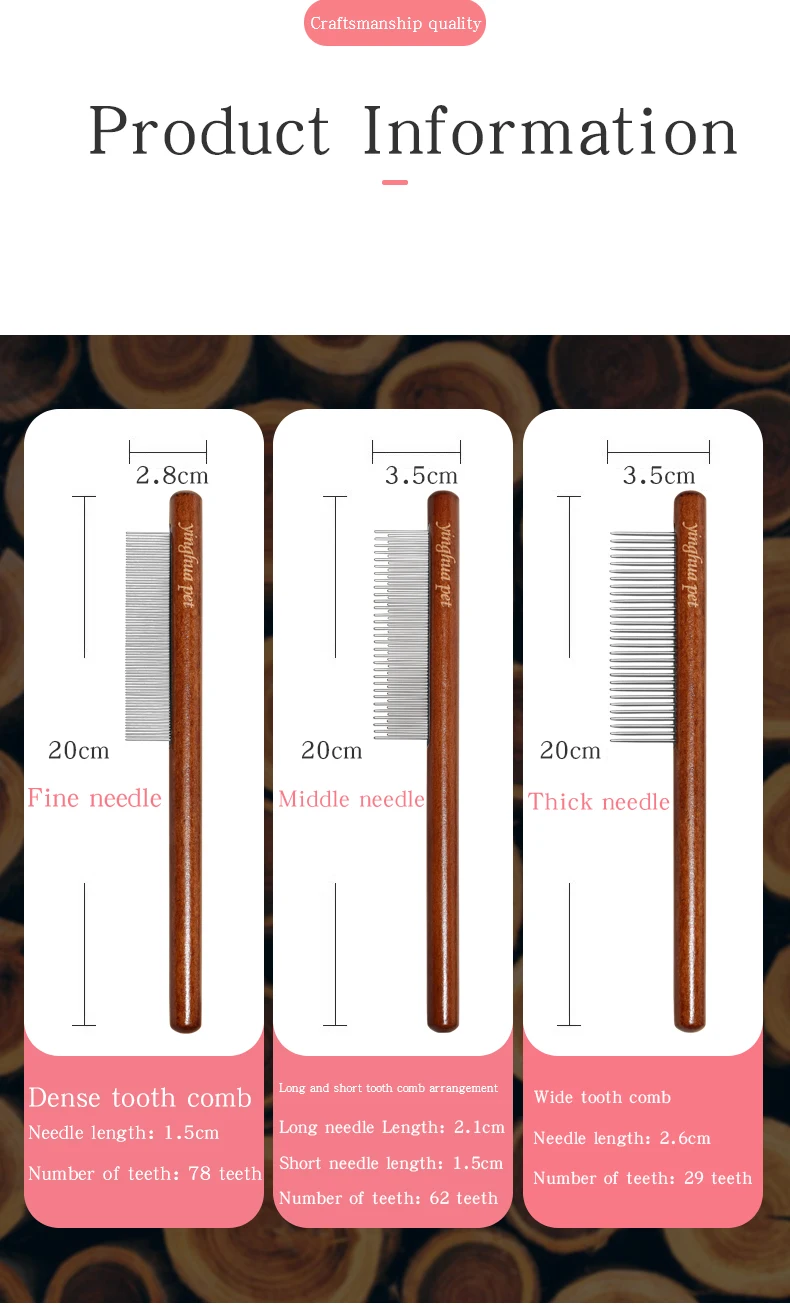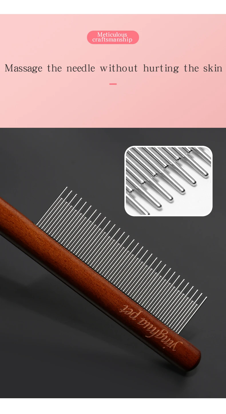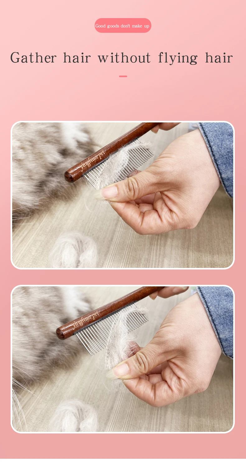 Cepillo de peine para gatos para el hogar, pelo largo, nudo abierto para eliminar el pelo flotante, peine de aguja, peine de fila de madera