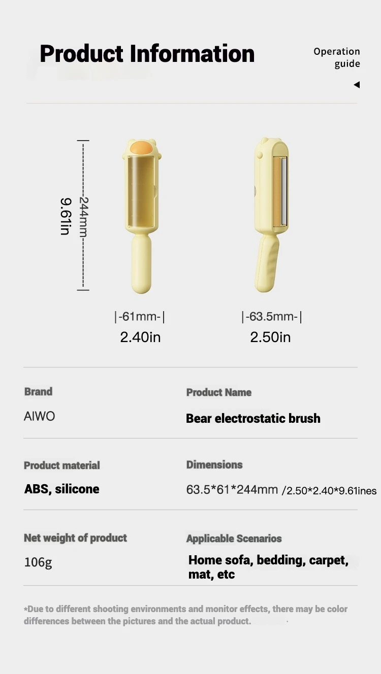 🌟 1. Portable Bear Static Hair Remover: Stylish and highly functional, this compact brush effectively removes hair in both directions, making it a perfect choice for pet owners who value aesthetics and practicality. A great solution for those with a deep-cleaning mindset.
