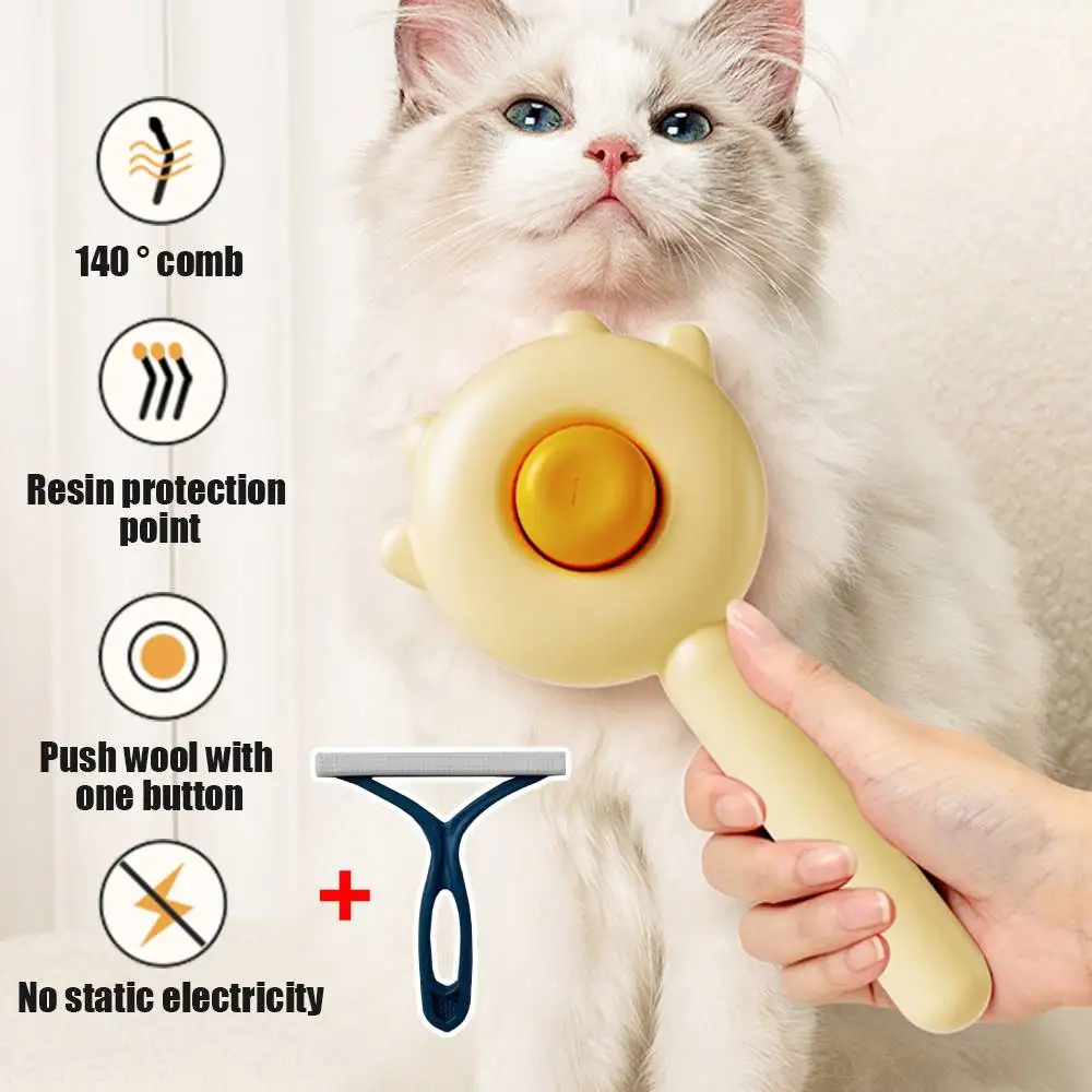 【Botón de limpieza con un clic】Después de cepillar a su mascota, simplemente haga clic en el botón. El obturador se saldrá, separando el cabello cepillado de la aguja de metal, luego limpie el cabello. El Botón del cepillo para el desprendimiento de gatos en el mango ahorra tiempo y energía al acicalarse y limpiar.