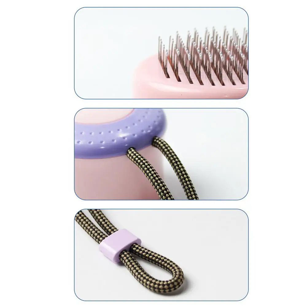 1. Diseño de cuerda: nuestro cepillo para gatos tiene un diseño redondo compacto con un cordón para facilitar su transporte y almacenamiento. Puede guardarlo en su bolsillo, bolso o colgarlo en su mochila cuando esté fuera de casa.