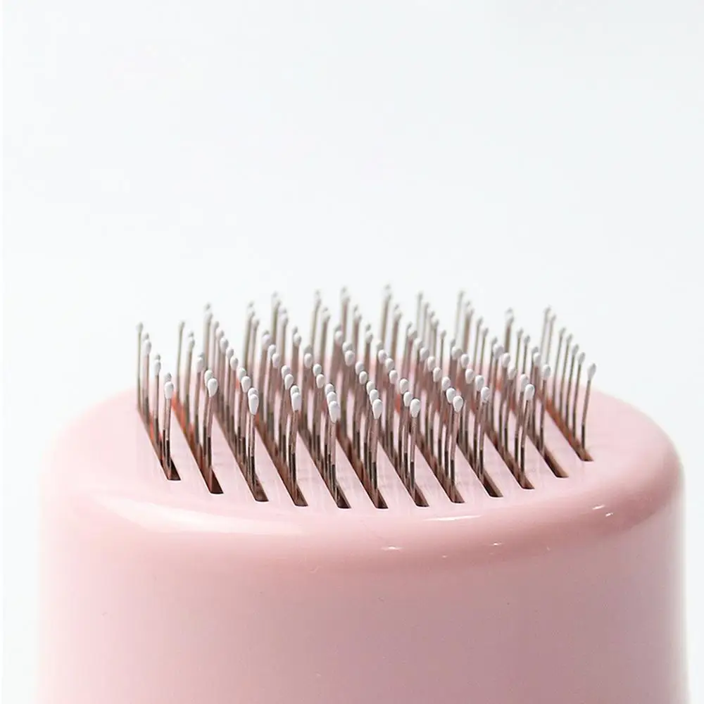 2. Con botón oculto: el diseño del cepillo está oculto en una caja del cepillo redondo para el pelo de gato, que protege perfectamente el cepillo cuando no está en uso. Presione el botón en la parte posterior del cepillo y saldrá.