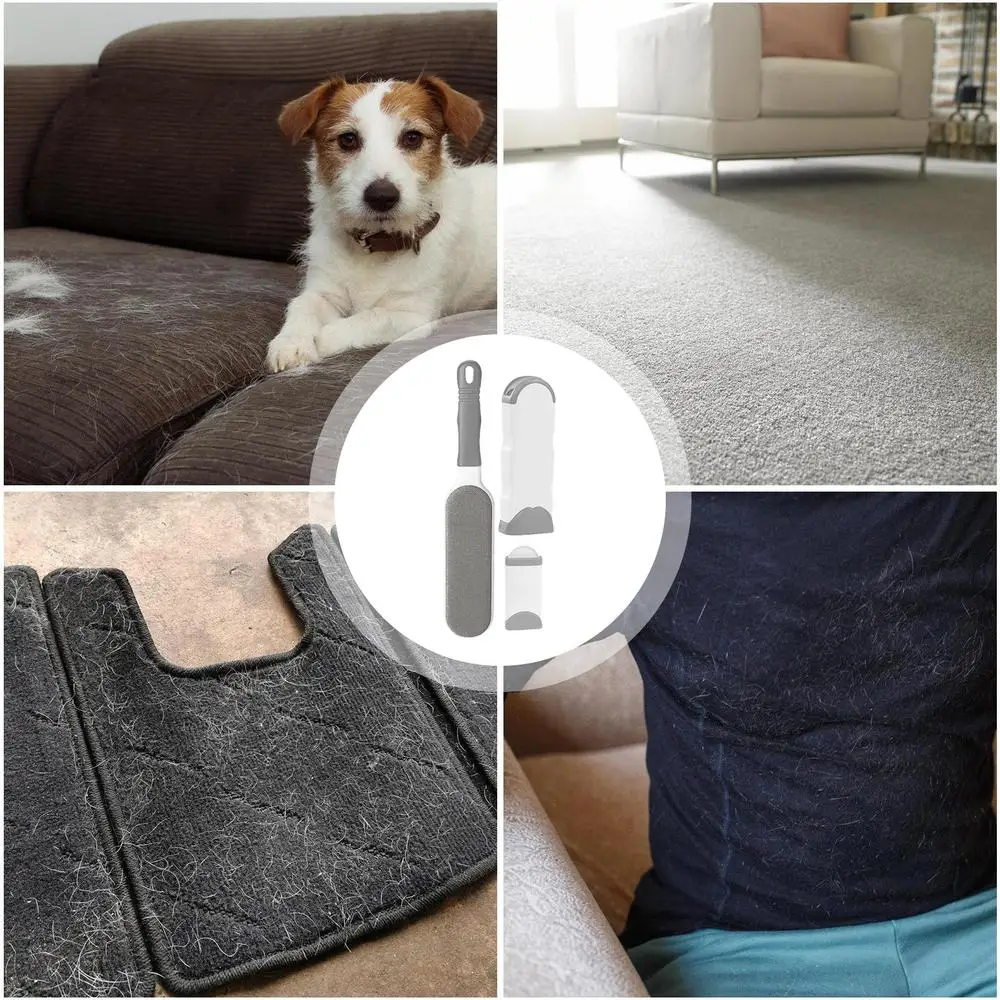2. Diversas aplicaciones: el lado más duro del cepillo elimina las manchas difíciles y el pelo grueso de las mascotas, mientras que el lado más suave limpia suavemente las telas y superficies delicadas. Es versátil para múltiples necesidades de limpieza, lo que lo convierte en el complemento multifuncional perfecto para la depilación de mascotas.
