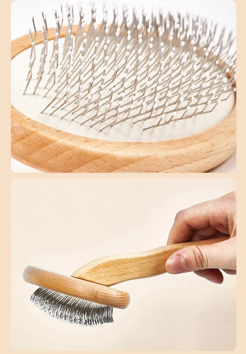 Cepillo para perros, peine de madera para perros con cuentas, masaje para el cuidado de mascotas, cepillo para gatos, removedor de pelo para mascotas, peine de madera para perros, apertura de nudos
