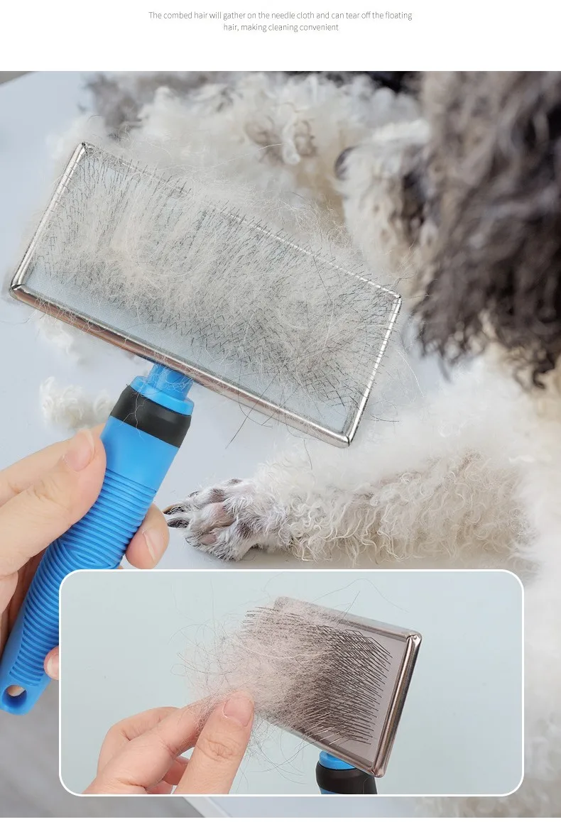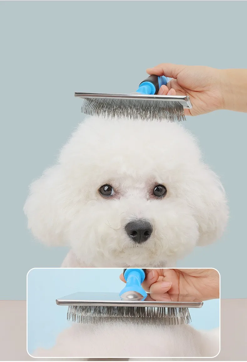 Cepillo para perros, peine de masaje para perros, mango cómodo, cepillos para perros, peine de acero inoxidable para el cuidado de perros, removedor de pelo para mascotas, suministros para mascotas