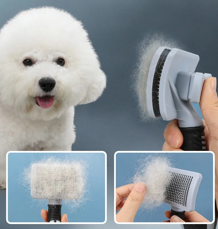 Cepillo para perros, peine de masaje para perros, removedor automático de pelo para mascotas, cepillo autolimpiante para gatos, cuidado de mascotas, cepillos de limpieza con un botón para perros, peine