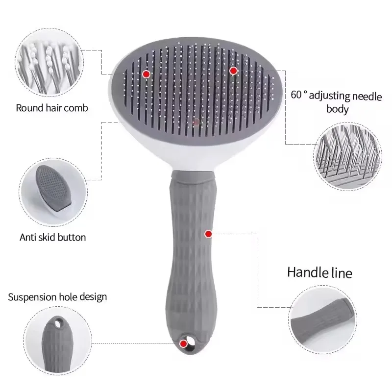 • Material de acero inoxidable: Hecho de acero inoxidable duradero, este cepillo de depilación para mascotas está diseñado para durar y resistir el uso frecuente.