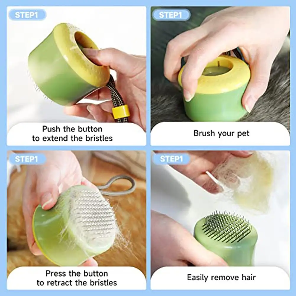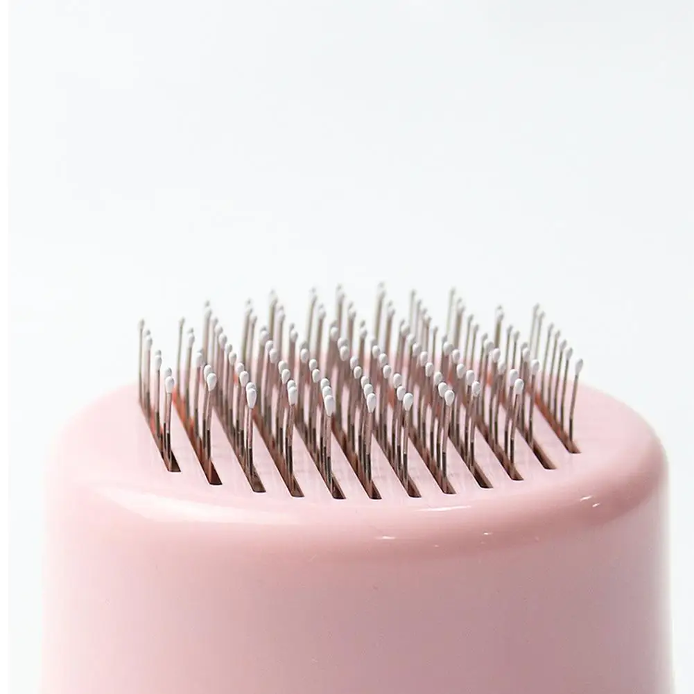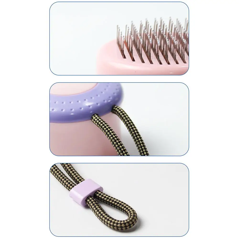 1. Este Cepillo deslizante de autolimpieza está diseñado como un botón para retraer los alfileres, y las cerdas se pueden retraer en la caja y separar completamente del cabello, para que podamos limpiar fácilmente el cabello, ahorrando tiempo y energía al peinar y limpiar.
