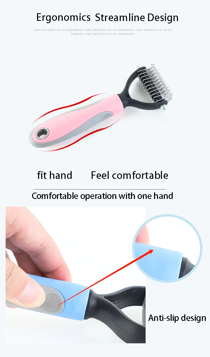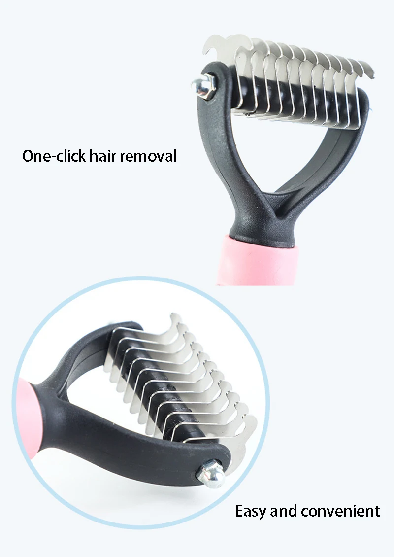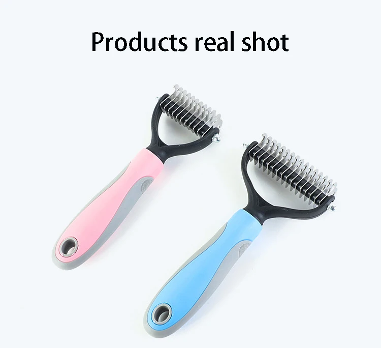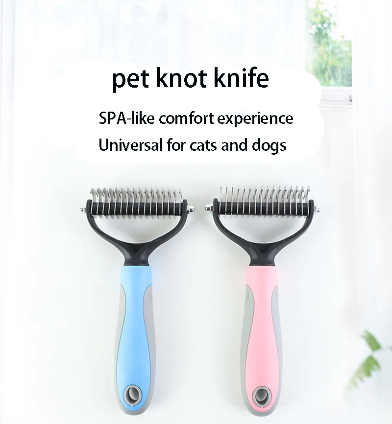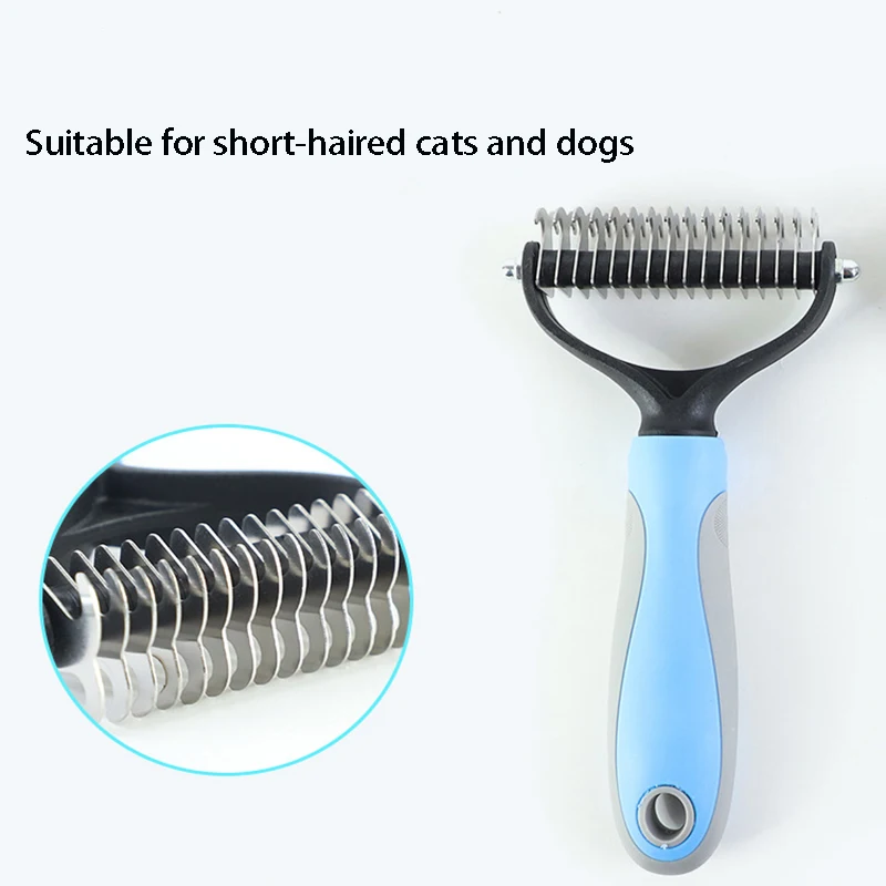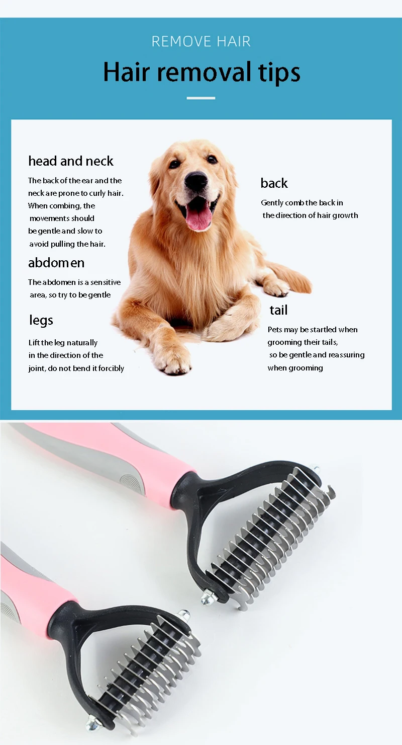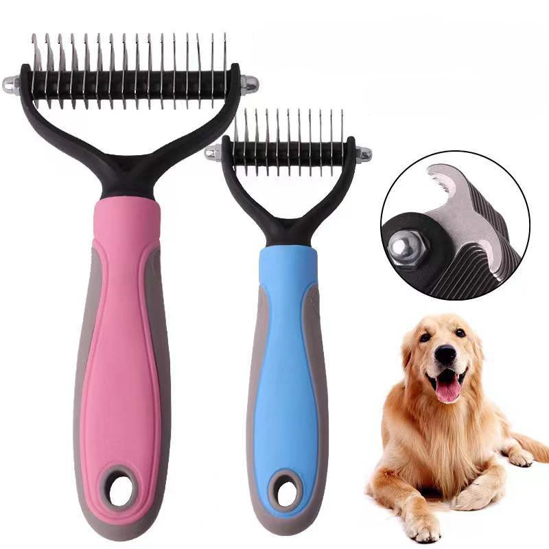 Cepillo profesional para despellejar mascotas, peine para perros de 2 caras, cepillo para gatos, rastrillo, herramientas de aseo para cachorros, capa interior, pelo volador