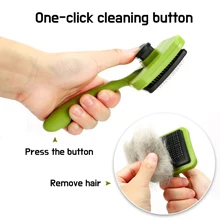 Presione el botón primero y luego puede quitar el pelo directamente del cepillo para perros