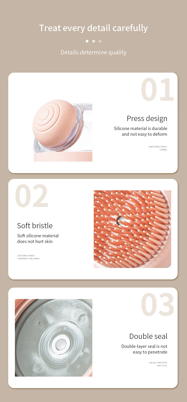 3.Hay dos estilos de cepillo de baño y champú.Diferentes pinceles te brindan diferentes experiencias.