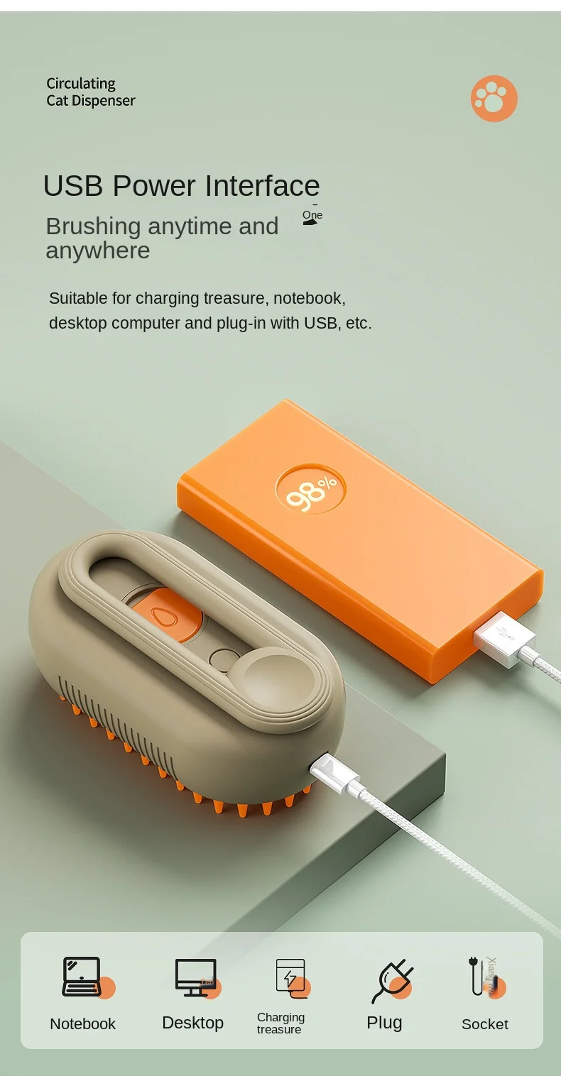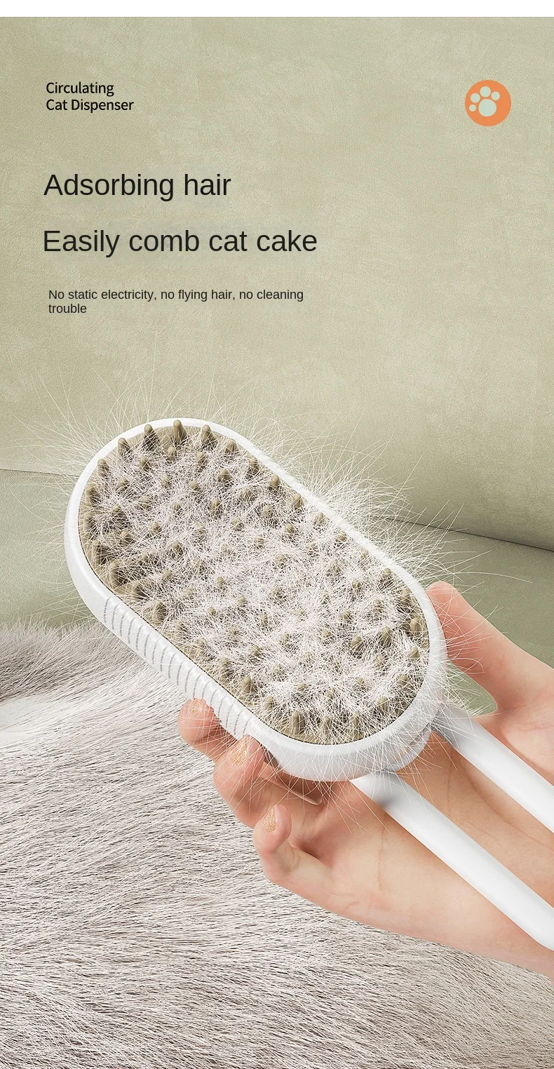1. Herramienta de cuidado multifuncional: este cepillo vaporizador para gatos resuelve eficazmente problemas como enredos y nudos del cabello, limpia la pelusa flotante y mantiene el pelaje de su amigo peludo saludable para el cuidado diario de las mascotas.