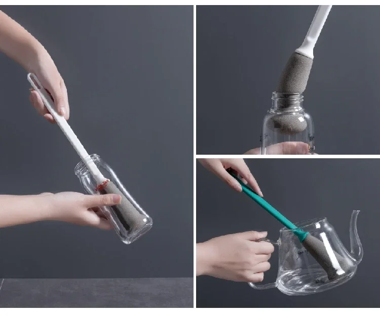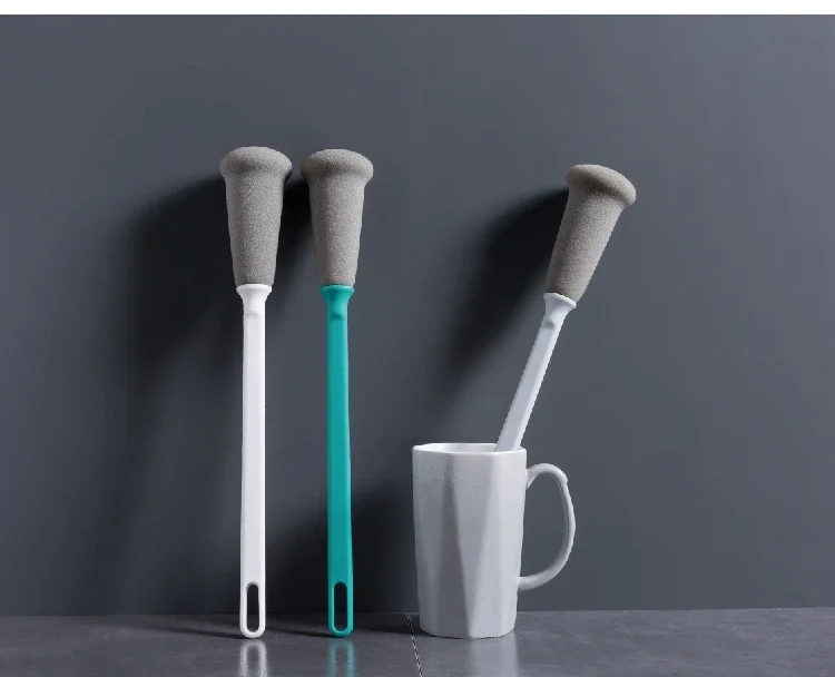 Cepillos de esponja, cepillo de taza con mango largo, sin ángulo muerto, cepillo para biberones para el hogar, herramientas de limpieza de botellas termo para manchas de té