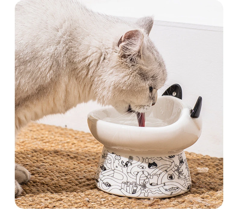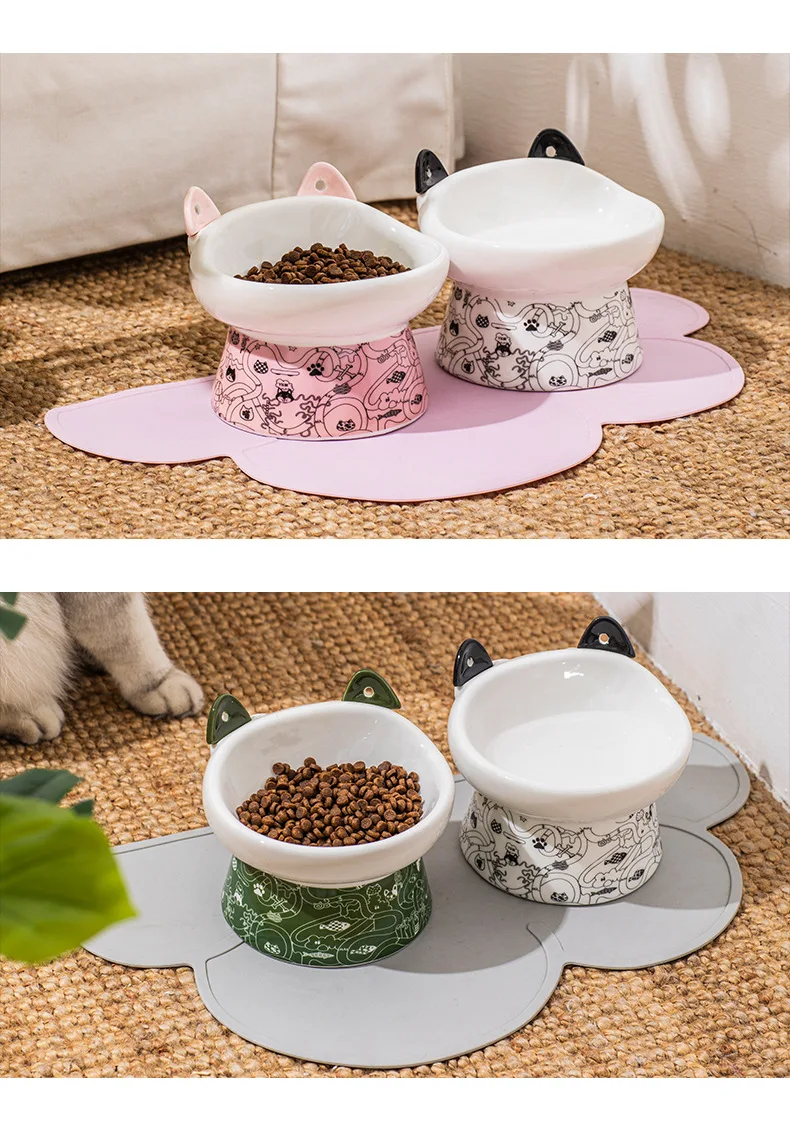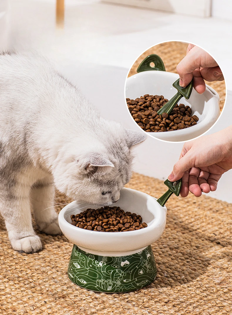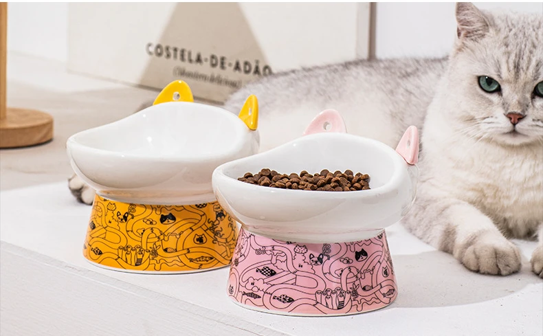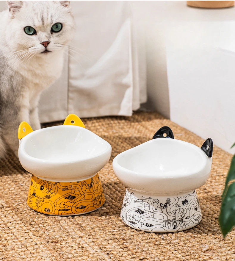 Ceramics Cat Bowls Protective Cervical Spine Pet Food Bowl Kitten Puppy Feeder Water Container Dogs Tableware Anti-Tumble Dishes